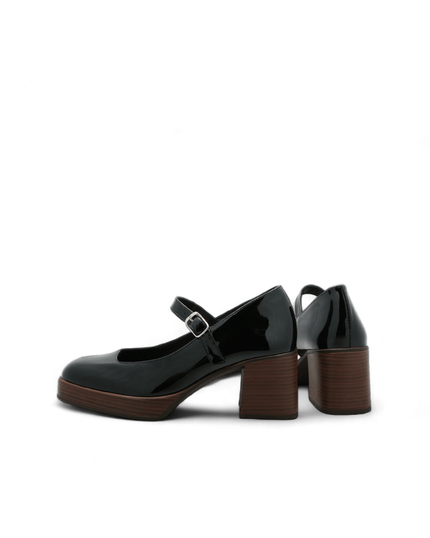 Ces babies à talon sont une véritable invitation à la mode et au confort. Leur couleur vernis noir profonde est idéale pour rehausser vos tenues hivernales, se mariant parfaitement avec des nuances de marron ou des palettes plus claires pour un look doux et élégant.