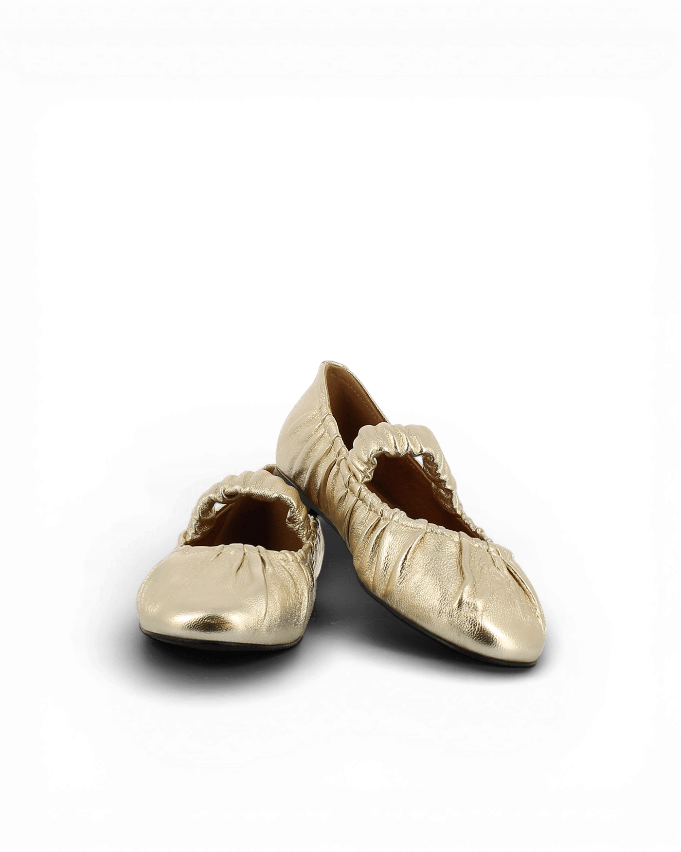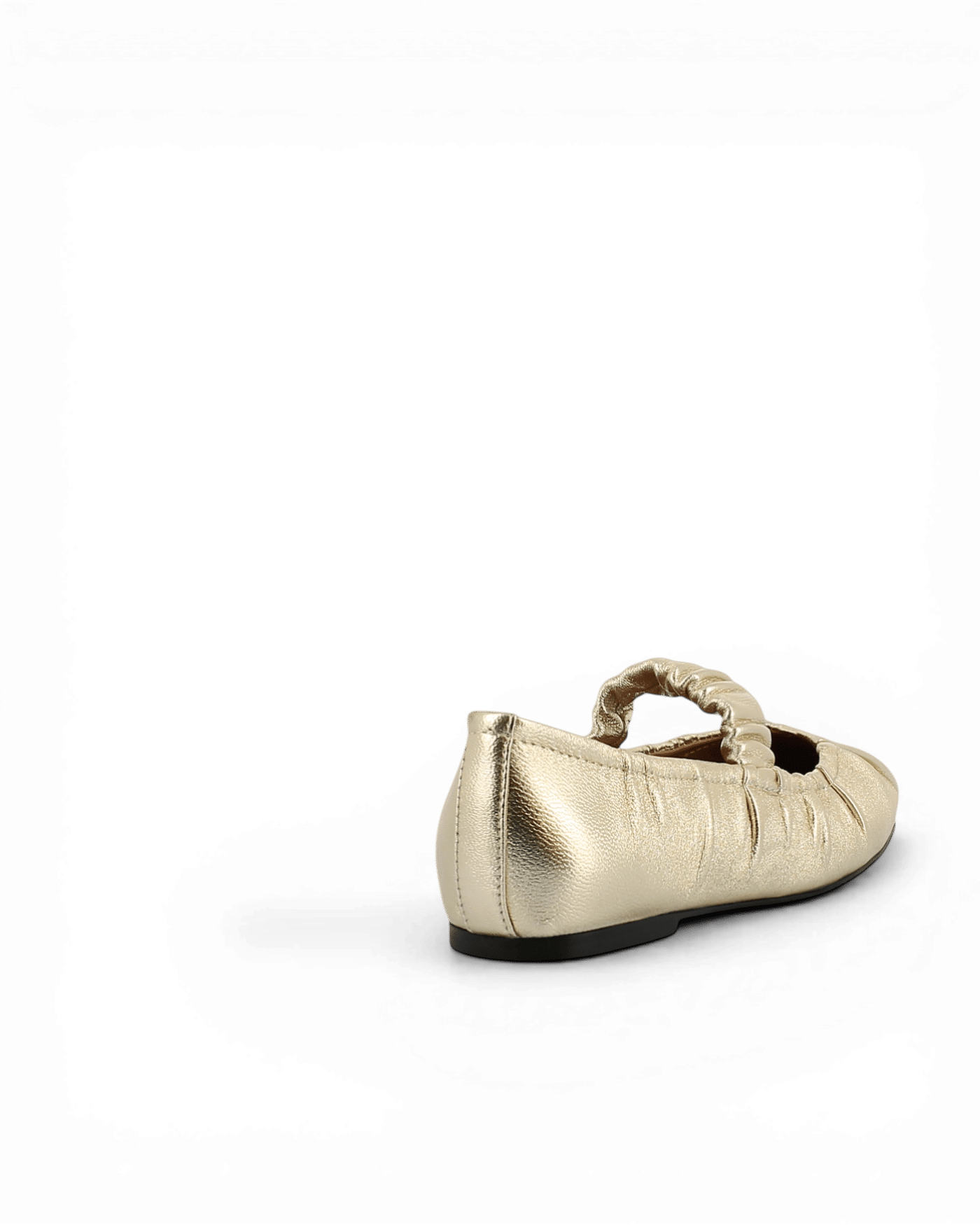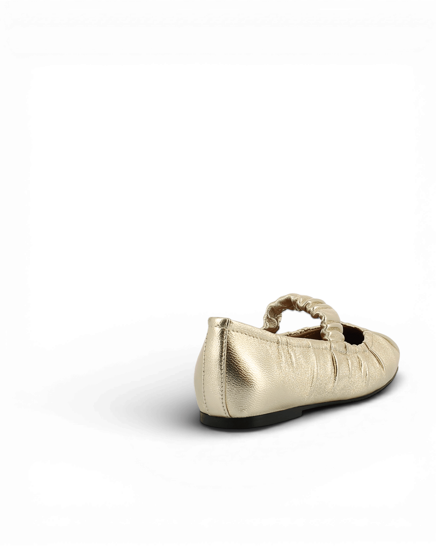 Découvrez la luminosité raffinée avec le modèle Irma au cuir doré métallisé éclatant et précieux. Conçue pour la femme qui recherche l’alliance parfaite entre élégance et praticité, cette ballerine dorée femme apporte une touche lumineuse à votre garde-robe sophistiquée.