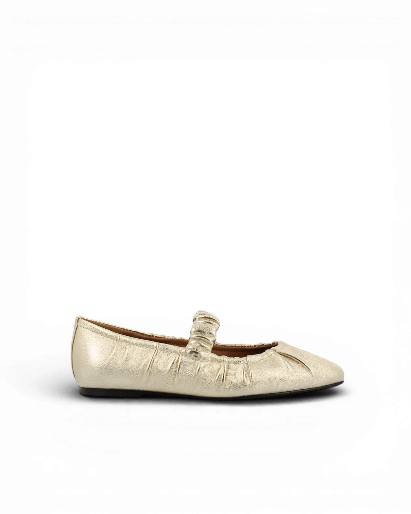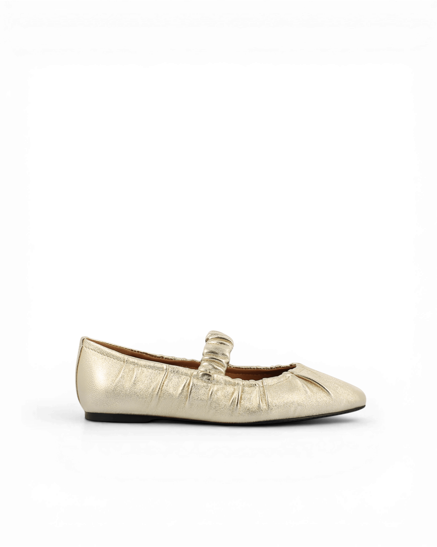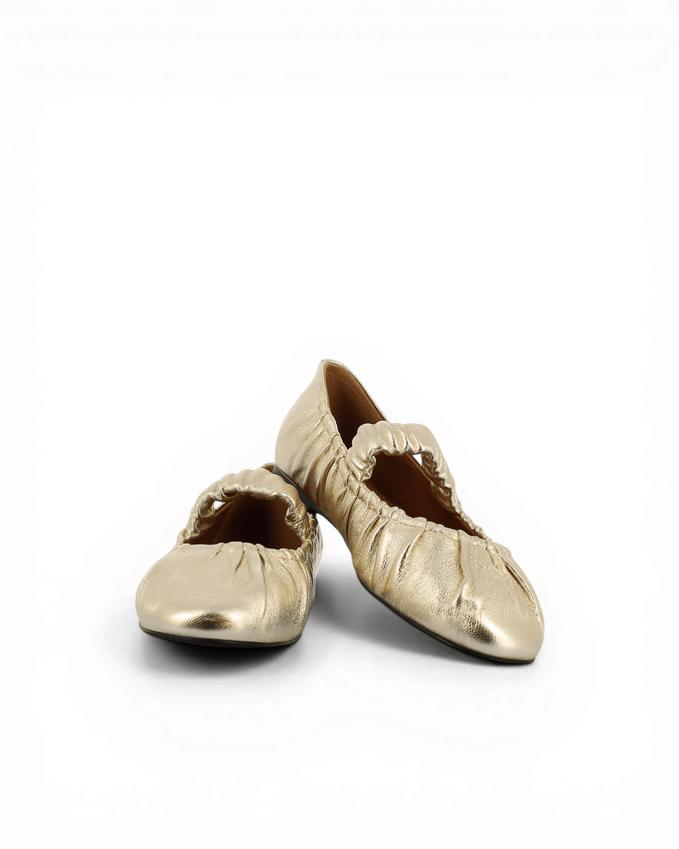 Découvrez la luminosité raffinée avec le modèle Irma au cuir doré métallisé éclatant et précieux. Conçue pour la femme qui recherche l’alliance parfaite entre élégance et praticité, cette ballerine dorée femme apporte une touche lumineuse à votre garde-robe sophistiquée.
