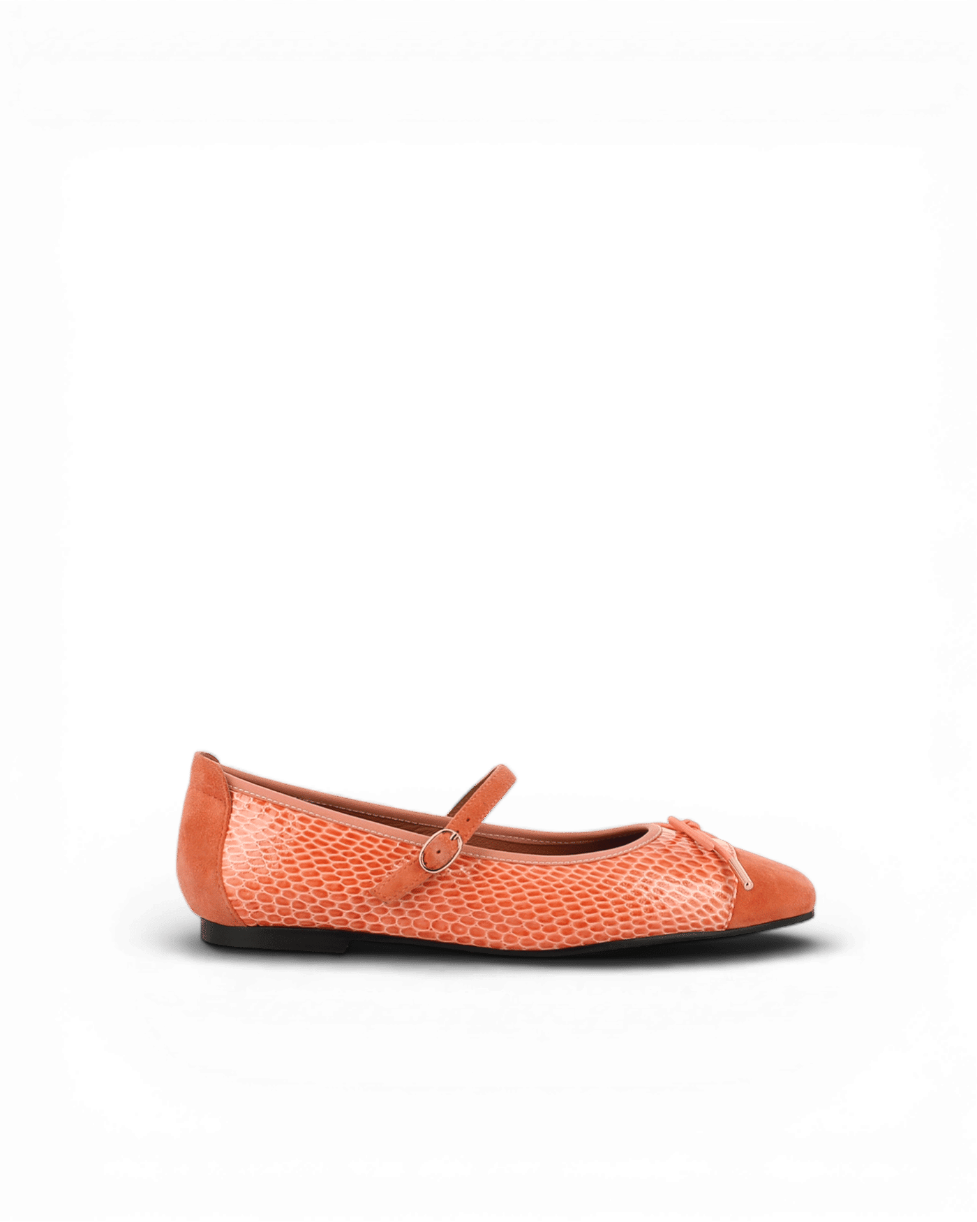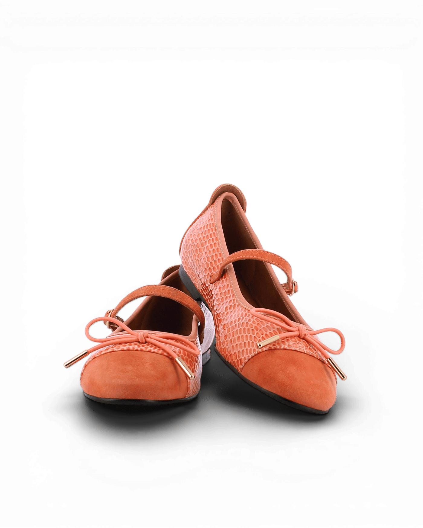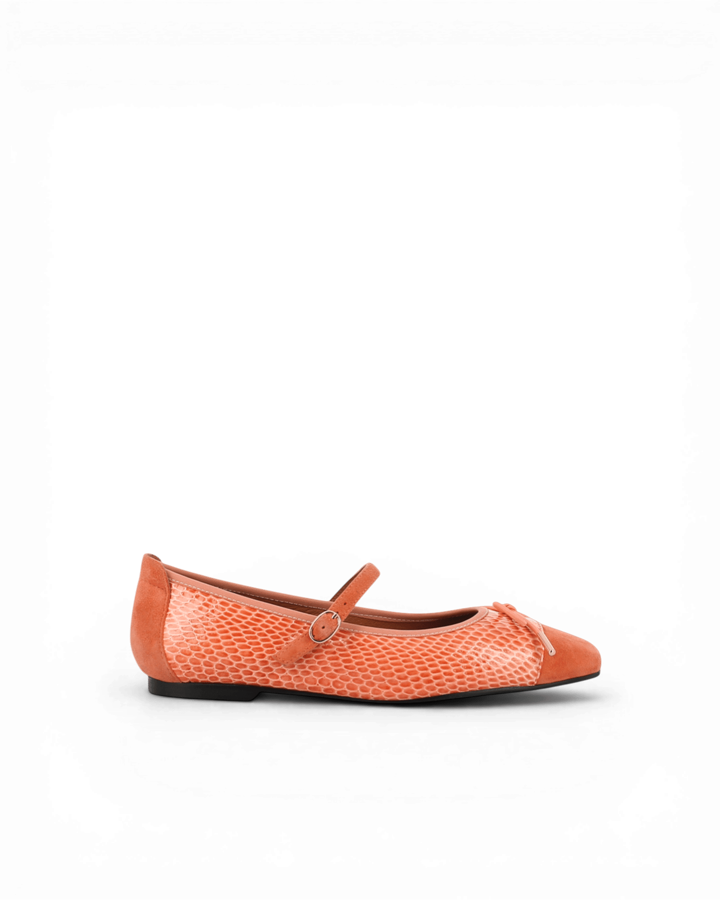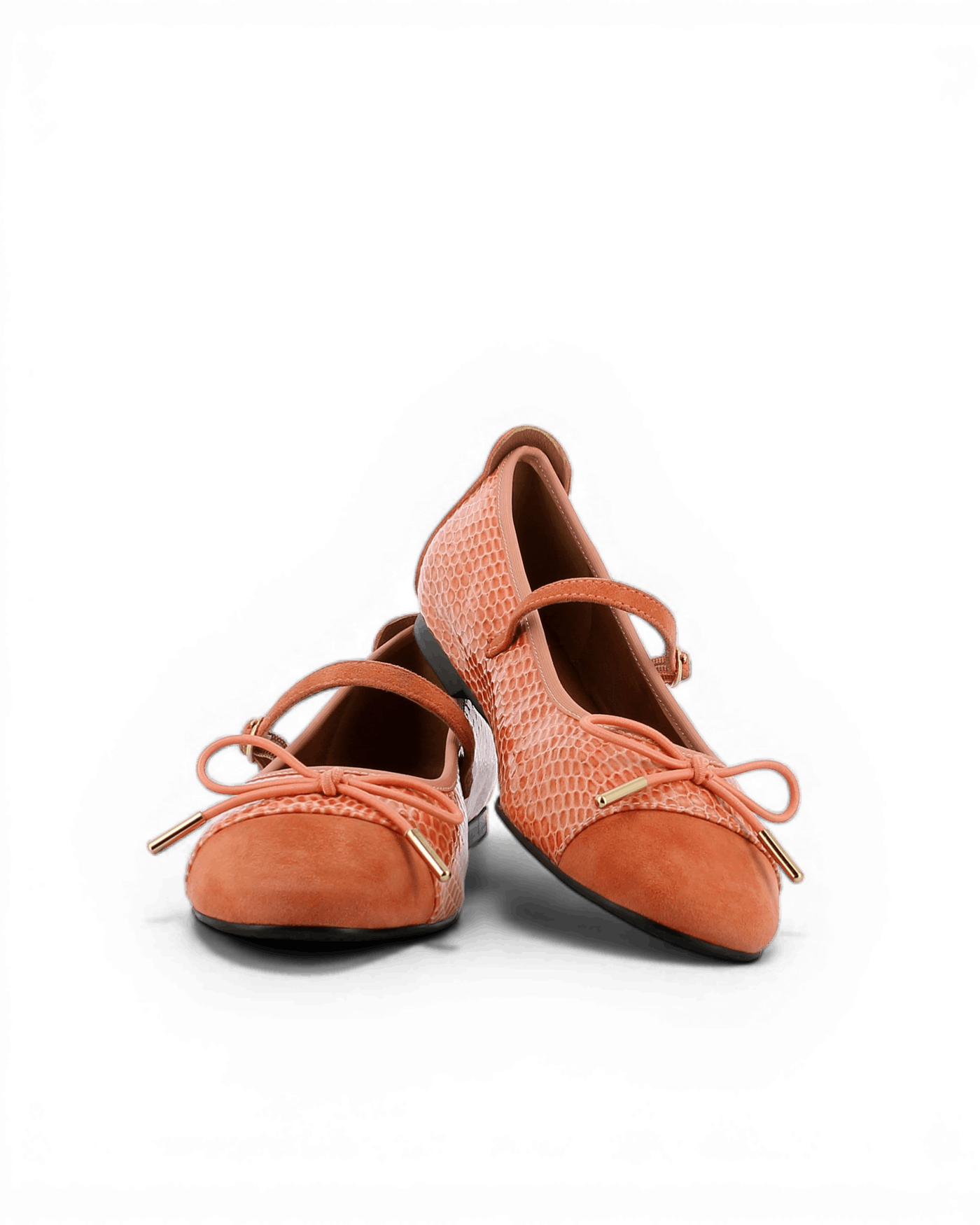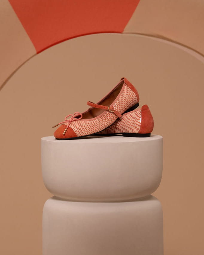 Le modèle Helen séduit par son association de cuir écaille corail et d’empiècements en daim qui créent une harmonie délicate. Les reflets du cuir écaille captent la lumière avec subtilité et élégance. Les empiècements en cuir daim corail uni structurent le modèle avec douceur et caractère. La bride ajustable sur le dessus du pied avec boucle argentée assure un maintien personnalisé tout au long de la journée. En outre, chaque détail révèle une attention particulière portée à la finition. Le nœud élastique à l’avant apporte une touche féminine discrète qui facilite l’enfilage. Cette composition témoigne d’une approche soignée de la chaussure classique qui ose la modernité.