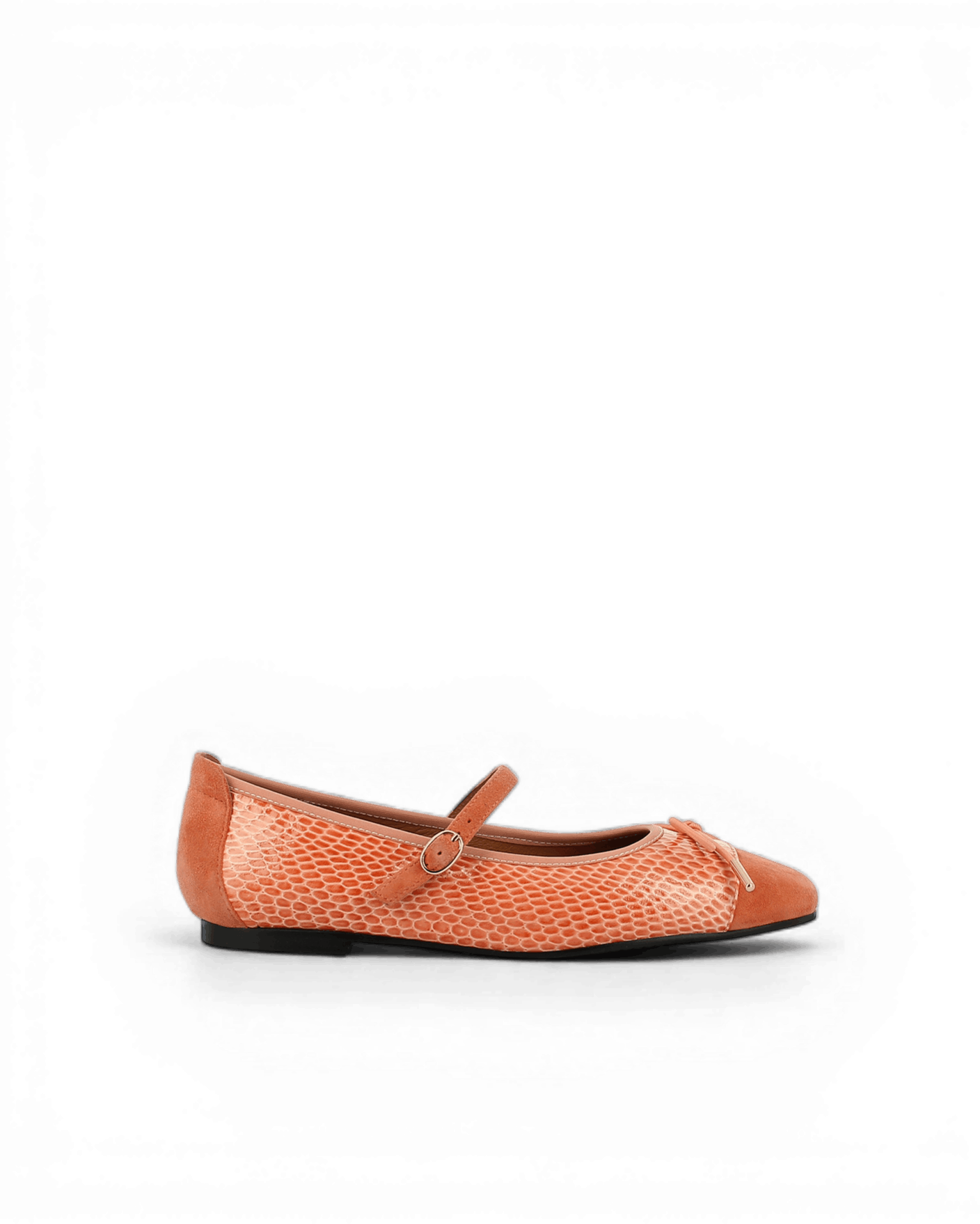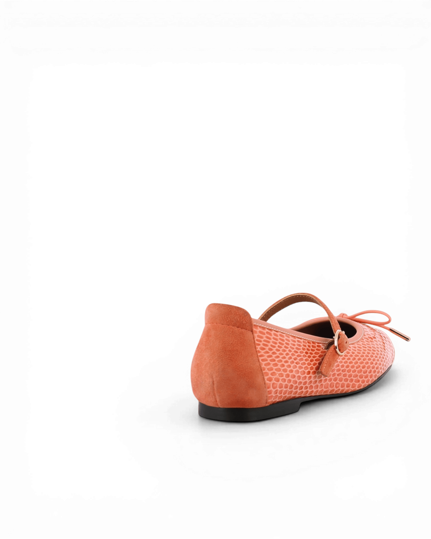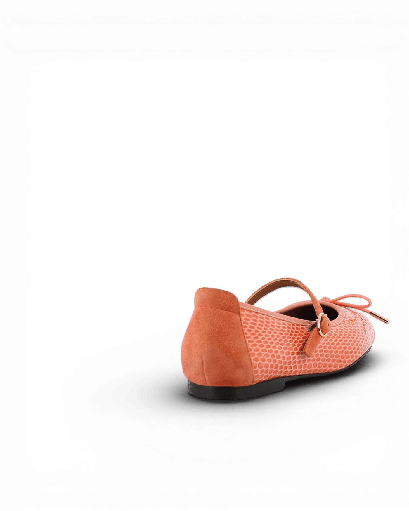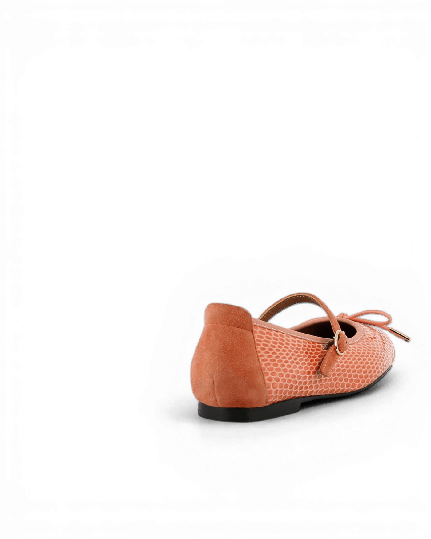 Le modèle Helen séduit par son association de cuir écaille corail et d’empiècements en daim qui créent une harmonie délicate. Les reflets du cuir écaille captent la lumière avec subtilité et élégance. Les empiècements en cuir daim corail uni structurent le modèle avec douceur et caractère. La bride ajustable sur le dessus du pied avec boucle argentée assure un maintien personnalisé tout au long de la journée. En outre, chaque détail révèle une attention particulière portée à la finition. Le nœud élastique à l’avant apporte une touche féminine discrète qui facilite l’enfilage. Cette composition témoigne d’une approche soignée de la chaussure classique qui ose la modernité.