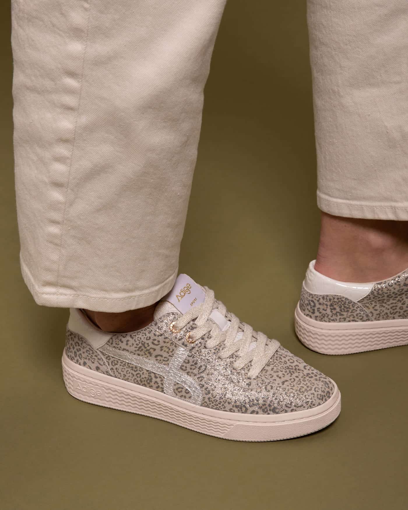 Cette basket cuir femme tendance léopard séduit par son esthétique actuelle et ses finitions précieuses. La tige en cuir arbore un imprimé léopard nacré subtil qui apporte du caractère sans ostentation. Par ailleurs, l’empiècement argenté sur le côté capte délicatement la lumière et crée un contraste lumineux raffiné. L’empiècement crocodile à l’arrière renforce la dimension luxueuse du modèle avec sophistication. La plateforme de 2,5 cm procure une légère élévation tout en préservant un confort optimal. L’ensemble compose une harmonie visuelle qui allie audace et raffinement contemporain.