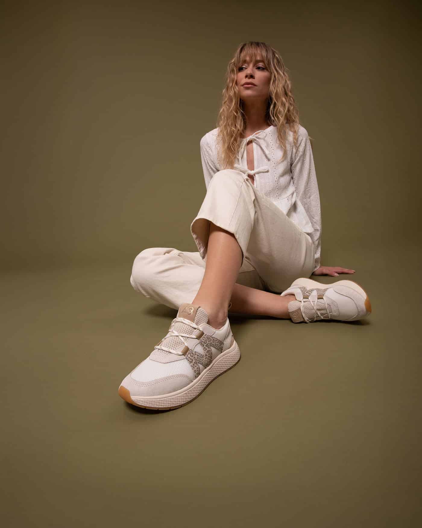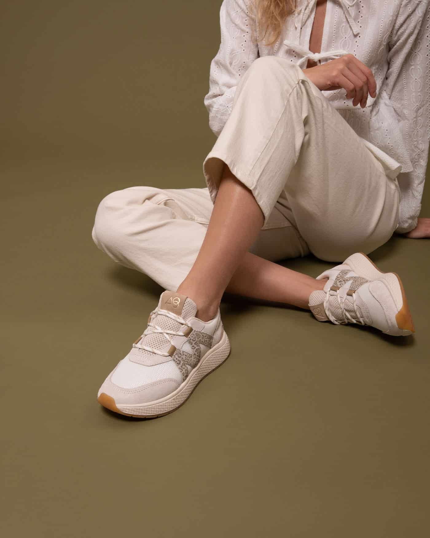 Retrouvée également les baskets Omega3 en coloris beige/gold.