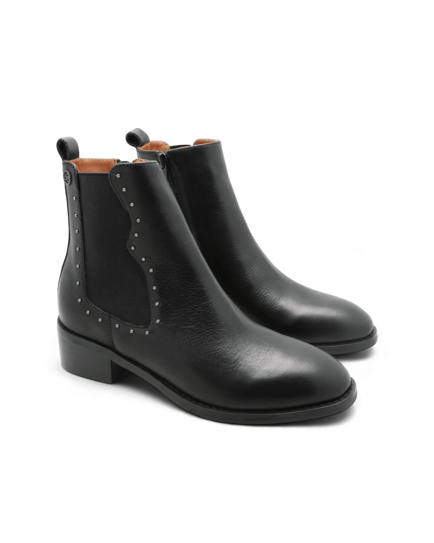 Pour une silhouette citadine et structurée, associez votre bottine chelsea noire femme Rio à un jean noir ajusté, un col roulé et un blazer oversize. Pour une allure plus féminine, optez pour une robe midi fluide ou une jupe plissée, accompagnée d’un manteau droit. La touche de clous métalliques permet d’ajouter du caractère à des tenues sobres, sans en faire trop. Vous pouvez également miser sur des accessoires noirs ou argentés pour créer un rappel subtil. Enfin, pour préserver l’éclat du cuir, nettoyez vos bottines régulièrement avec un chiffon doux et appliquez un soin adapté.