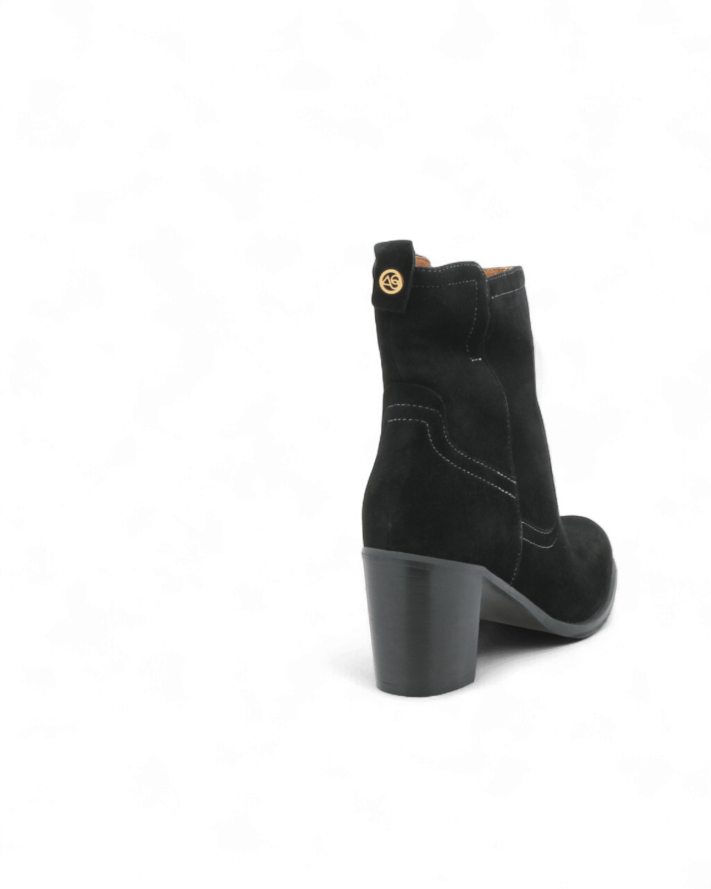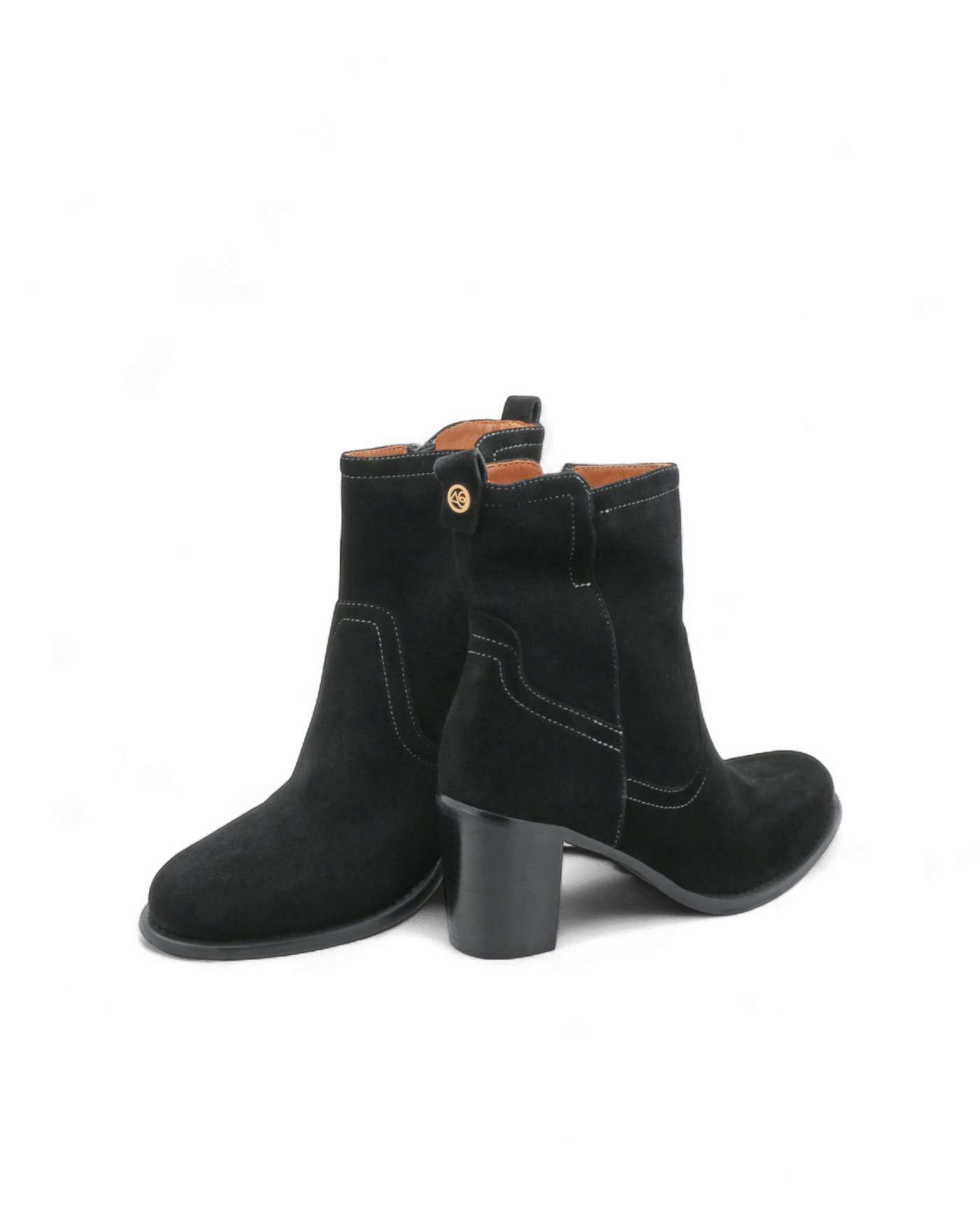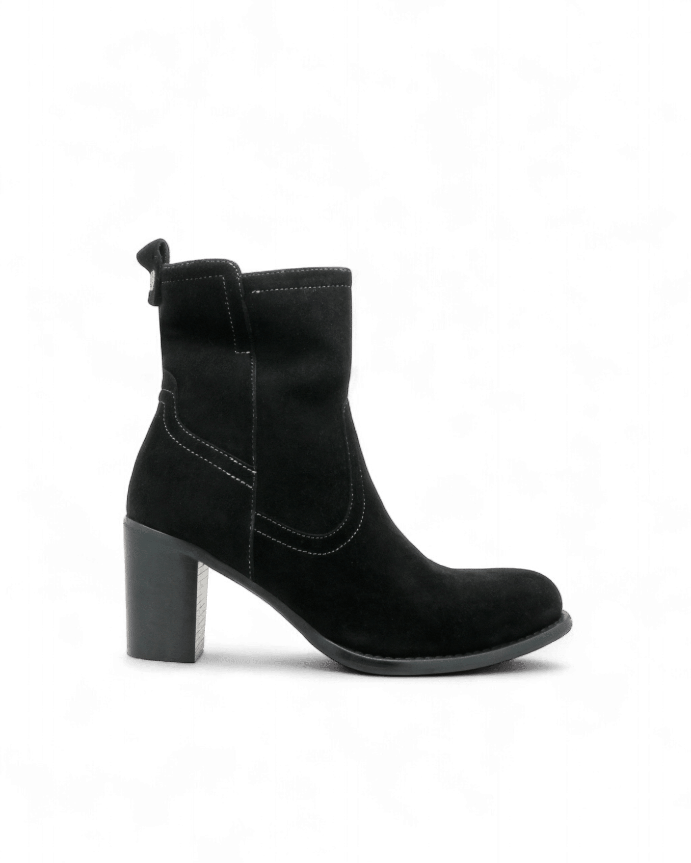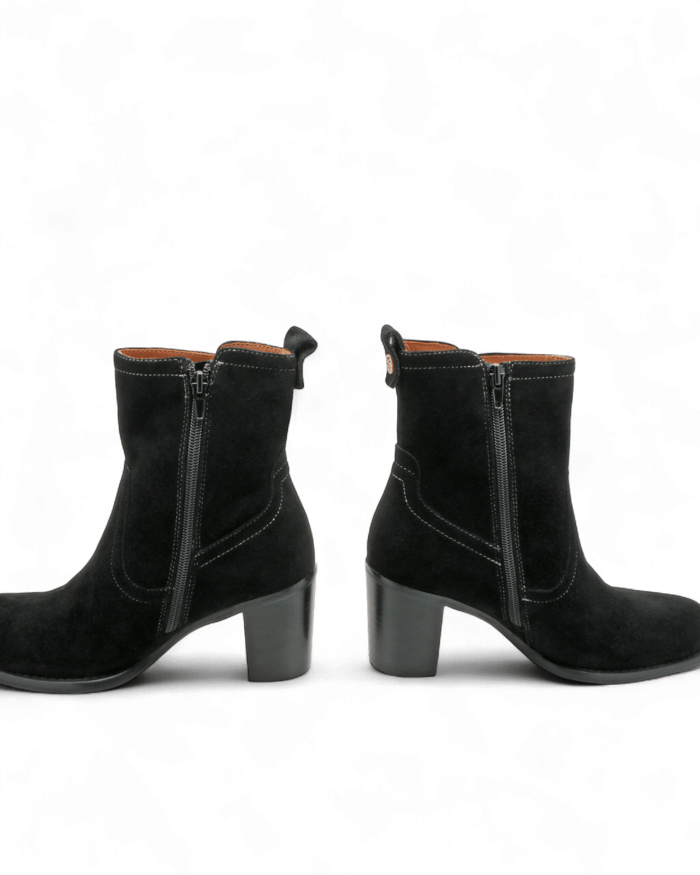 Affichez une allure élégante et affirmée avec la bottine noir a talon Fiji, un modèle pensé pour conjuguer féminité et confort. Sa ligne sobre et contemporaine séduit par ses finitions soignées et son cuir velours délicatement travaillé.