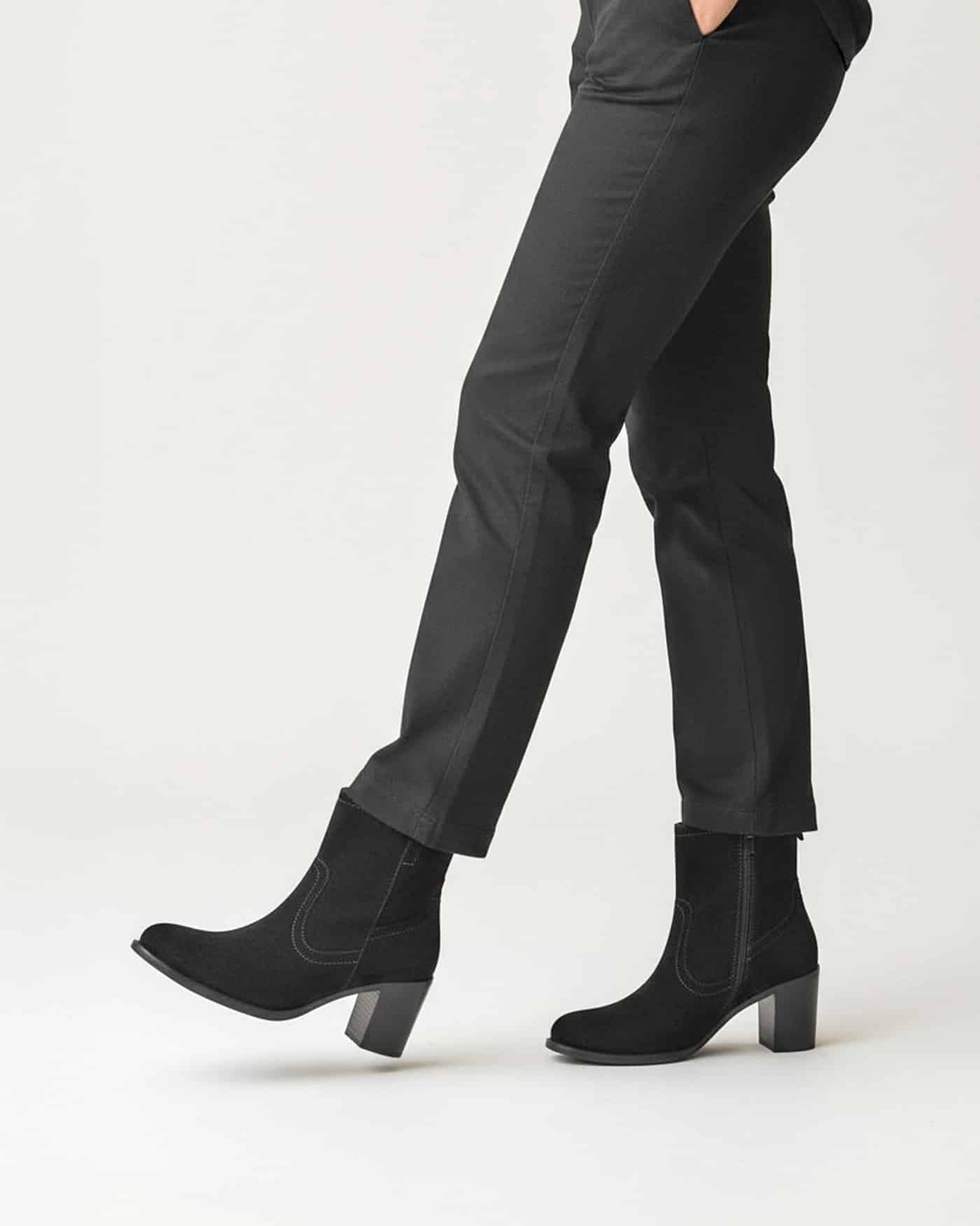 Associez la bottine noir a talon à un jean droit ou un pantalon en laine pour une allure structurée et chaleureuse. Pour un style plus féminin, portez-la avec une jupe midi et des collants semi opaques. Elle complète à merveille un manteau long, une veste en drap de laine ou une maille épaisse. En semaine comme le week-end, elle offre une élégance intemporelle, sans effort.