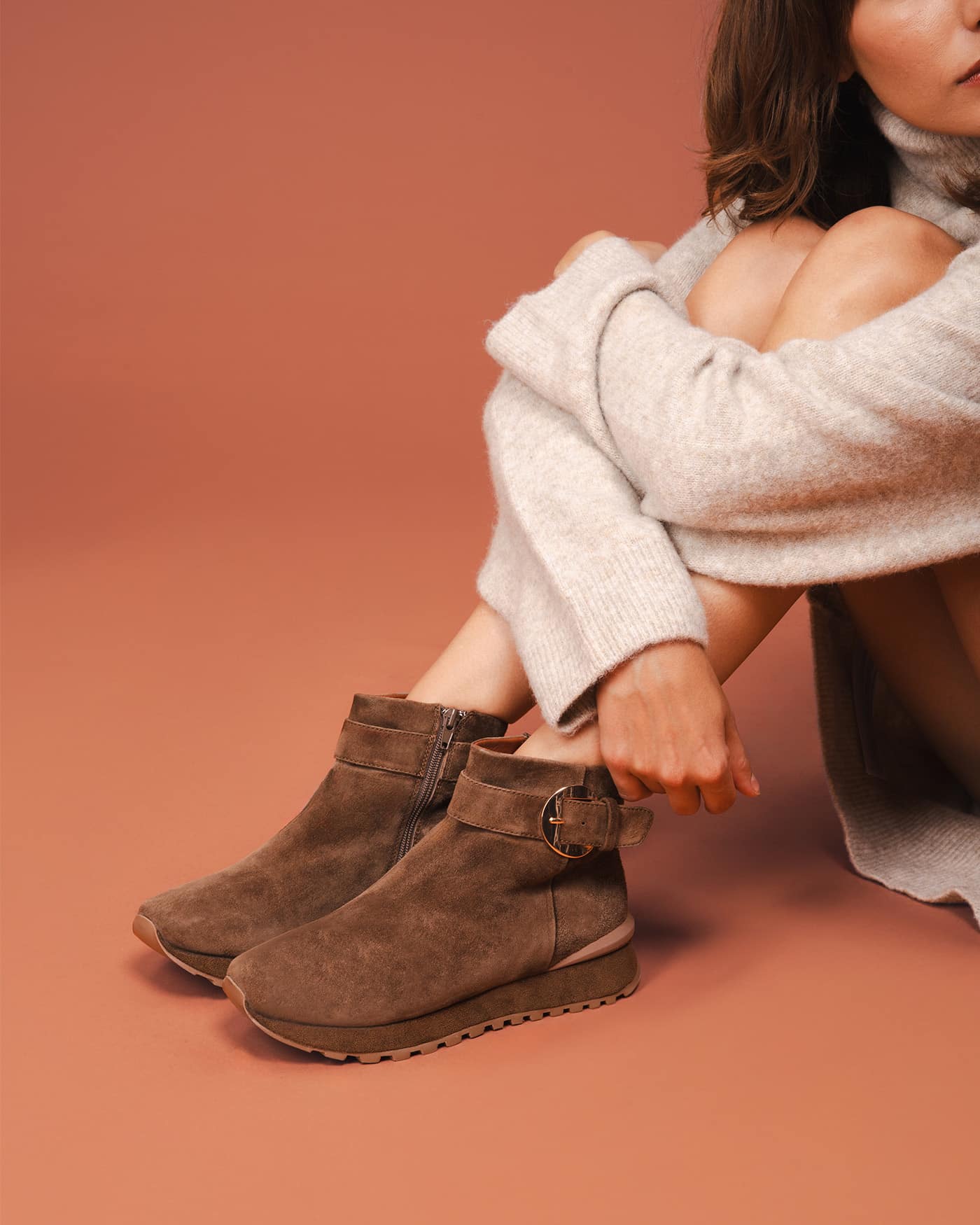 Alliant confort et modernité, la bottine sport Yes est une pièce maîtresse pour la femme active en quête d’élégance au quotidien. Conçue en daim noix souple, elle enveloppe délicatement le pied tout en offrant une belle liberté de mouvement. Sa semelle compensée assure un excellent maintien, idéale pour vos journées rythmées tout en conservant une allure féminine.