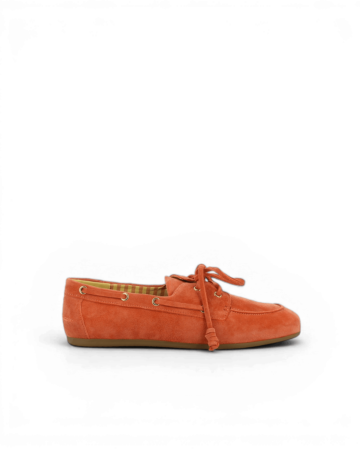 Cette chaussure se distingue par sa teinte corail vibrante en cuir velours qui réinterprète avec audace les codes nautiques traditionnels. Par ailleurs, les lacets en daim ton sur ton s’entrelacent à travers des œillets argentés disposés tout autour de la chaussure, créant un jeu visuel harmonieux. À l’intérieur, la doublure en toile rayée évoque avec subtilité l’univers maritime et apporte une touche d’authenticité. De plus, la semelle plate offre un confort incomparable pour vos déplacements quotidiens, qu’ils soient urbains ou balnéaires.