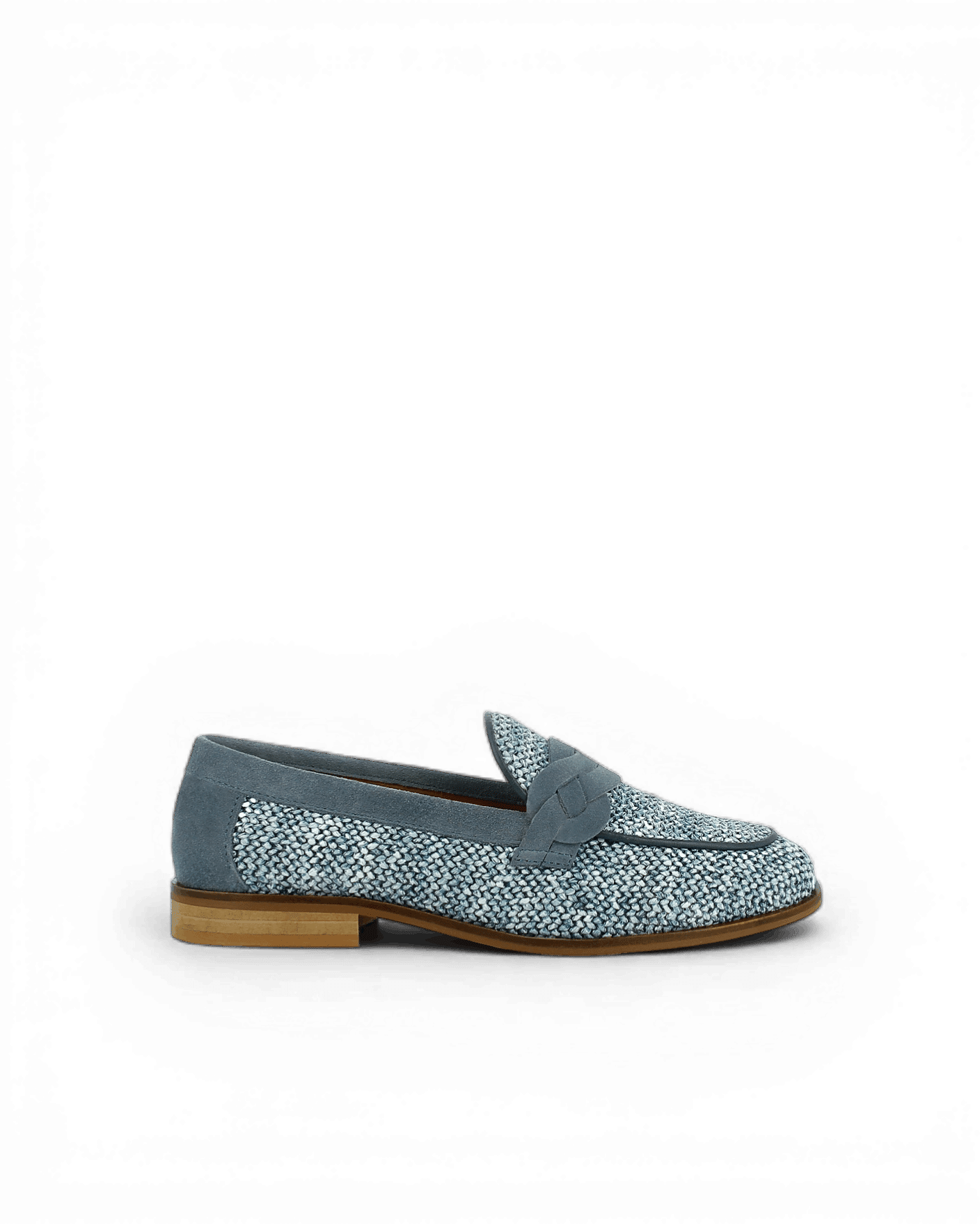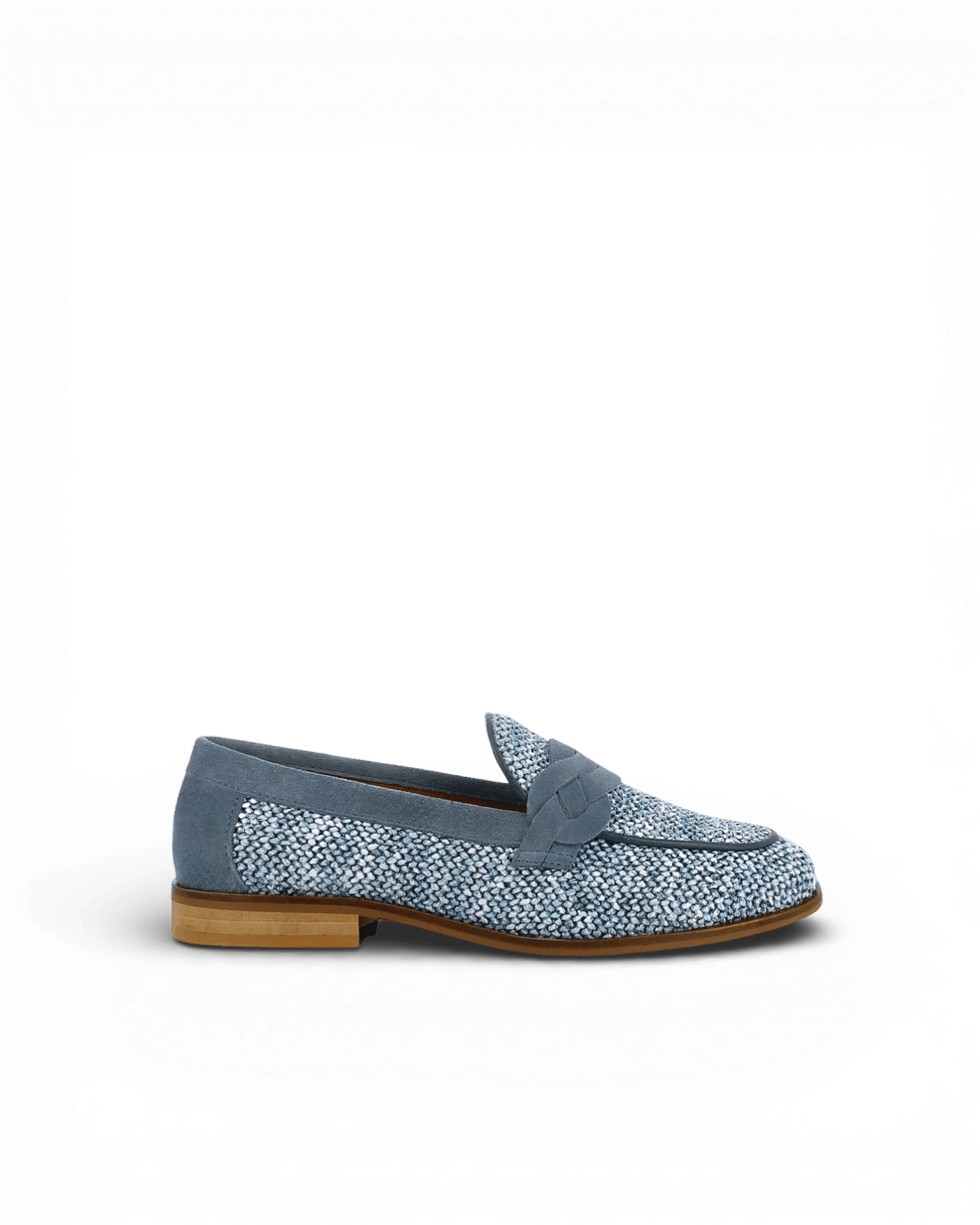 Ce mocassin bleu affiche un tissage en raphia aéré qui confère légèreté et fraîcheur. Ensuite, le cuir velours bleu structure la tige avec élégance. Le tressé orne l’empeigne et révèle un savoir-faire authentique. Ces empiècements en cuir velours soulignent les lignes du modèle avec finesse.