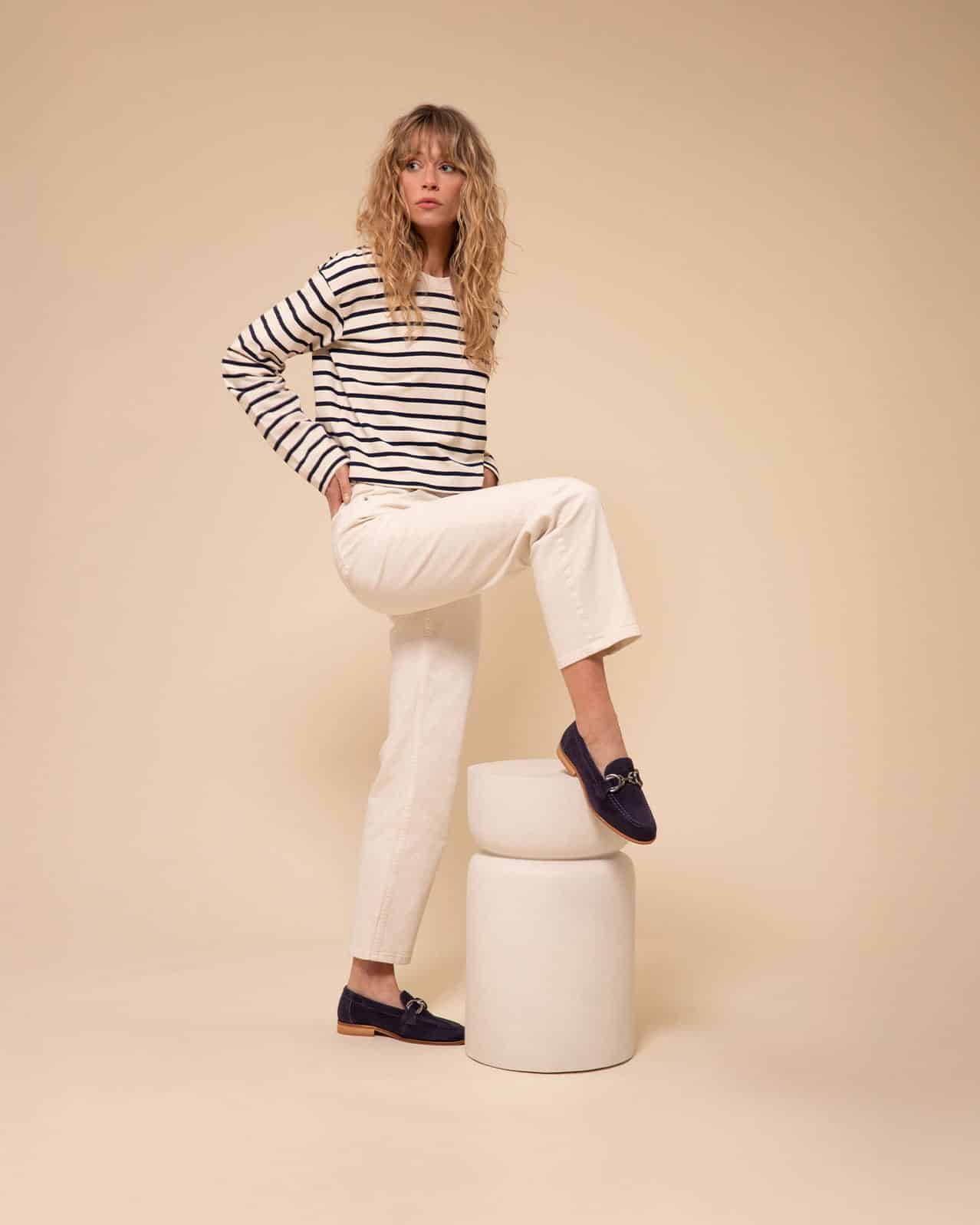 Affirmez votre élégance avec ce mocassin bleu marine femme qui conjugue raffinement intemporel et confort absolu. Conçu pour la femme moderne et exigeante, le modèle Eddy s’impose comme une pièce essentielle de votre vestiaire. Cette chaussure incarne l’alliance parfaite entre tradition et modernité, offrant une silhouette élégante qui traverse les saisons sans jamais se démoder.