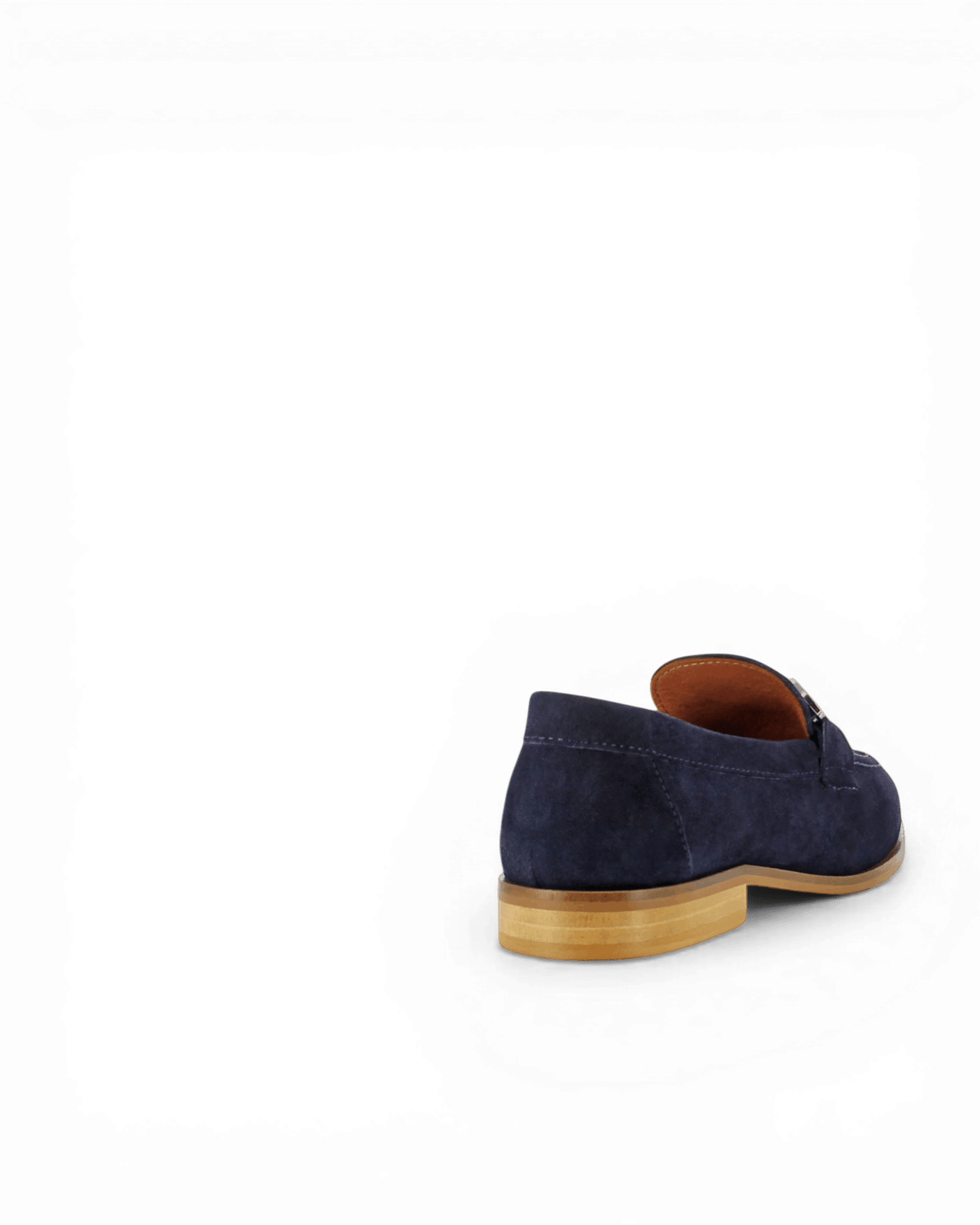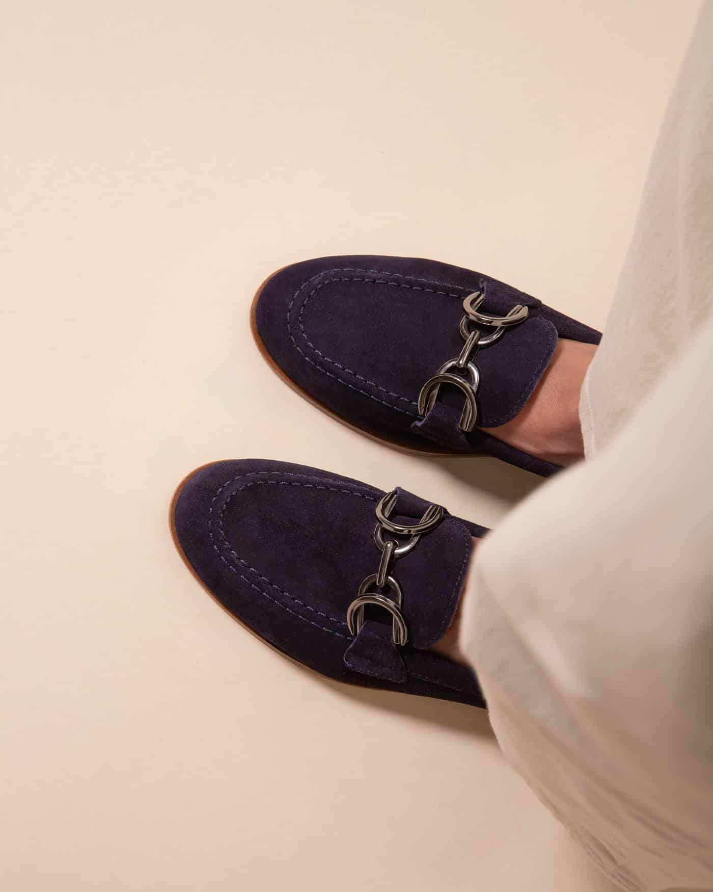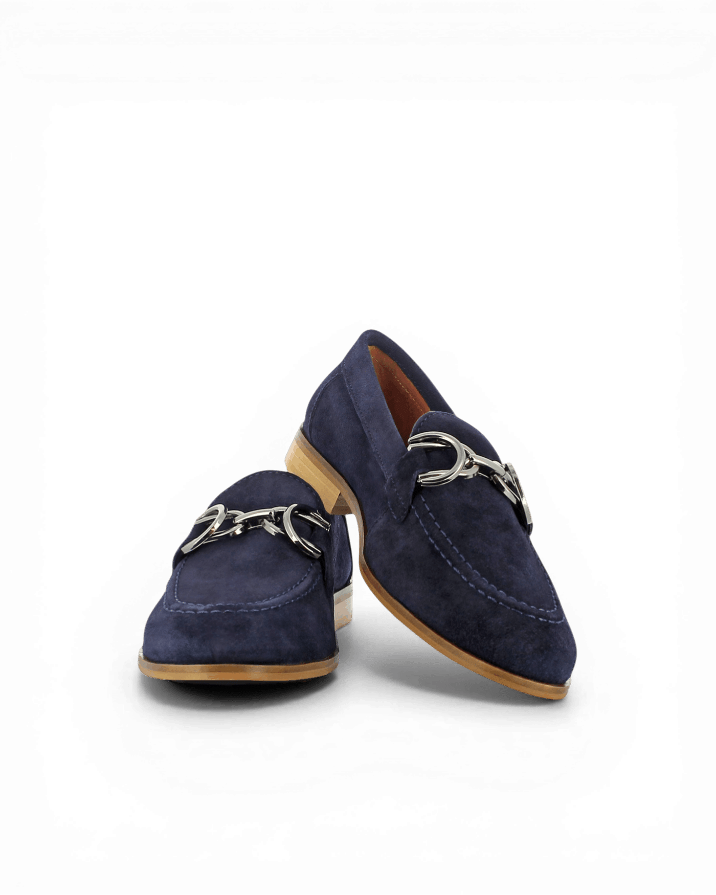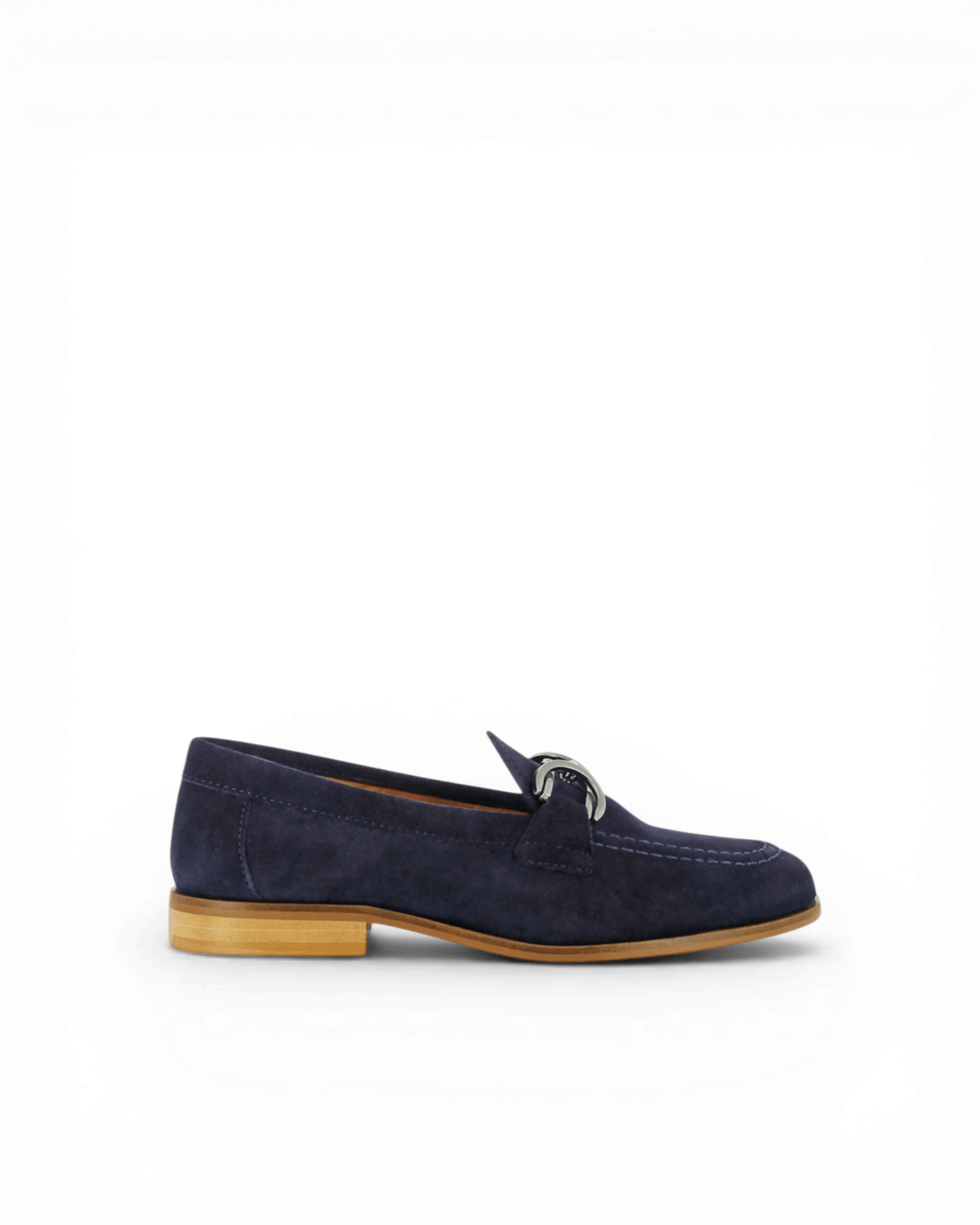 Ce mocassin bleu marine femme se distingue par sa tige en cuir velours d’une profondeur remarquable. Par ailleurs, la chaîne métallique en nickel gris habille l’empeigne avec sophistication. Ce détail signature apporte une touche contemporaine sans compromettre la sobriété du modèle. La teinte bleu marine s’avère particulièrement versatile, se mariant aisément avec l’ensemble de votre garde-robe tout en affirmant votre sens du style.