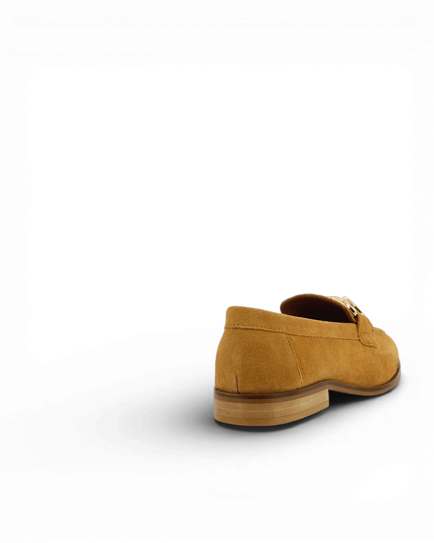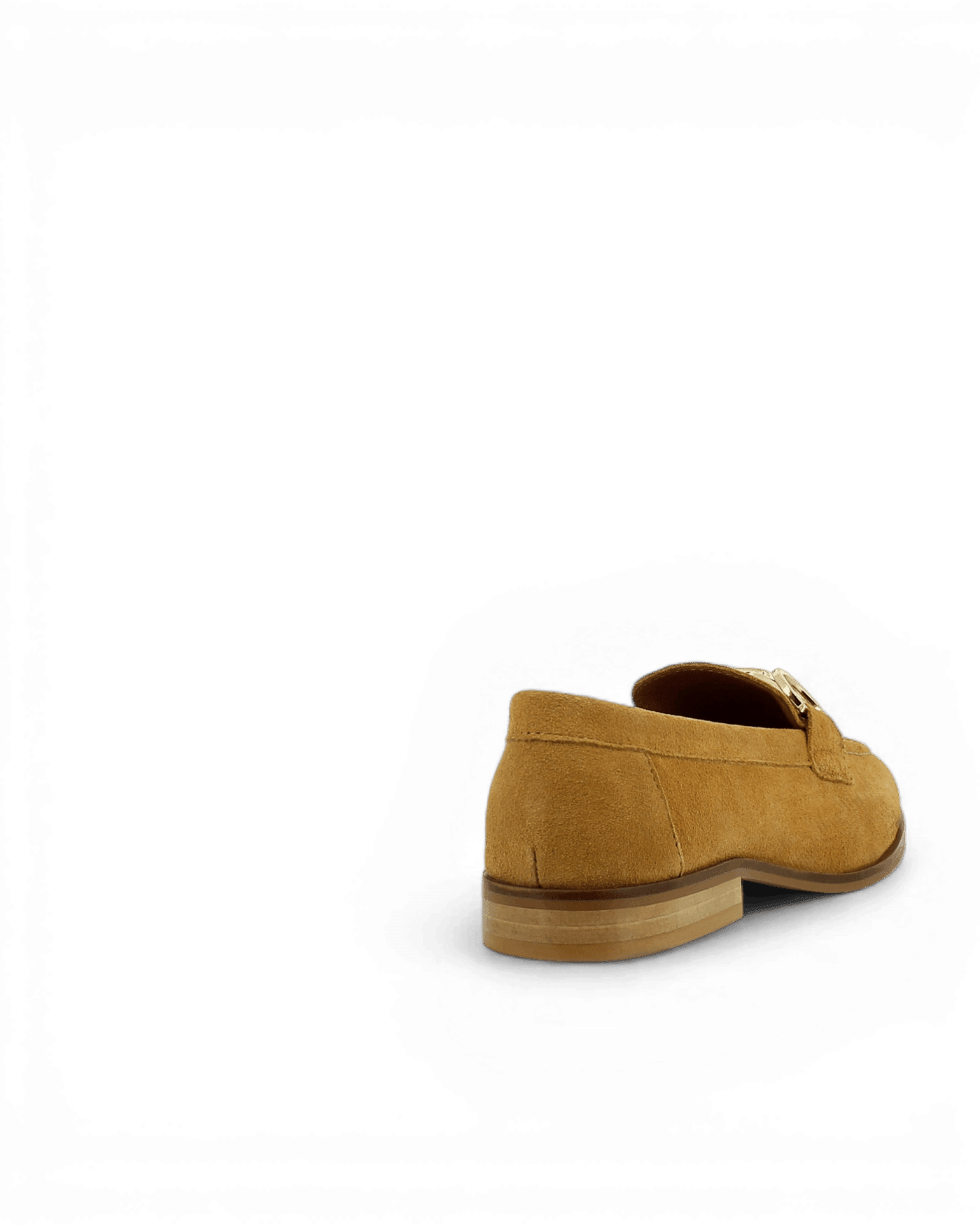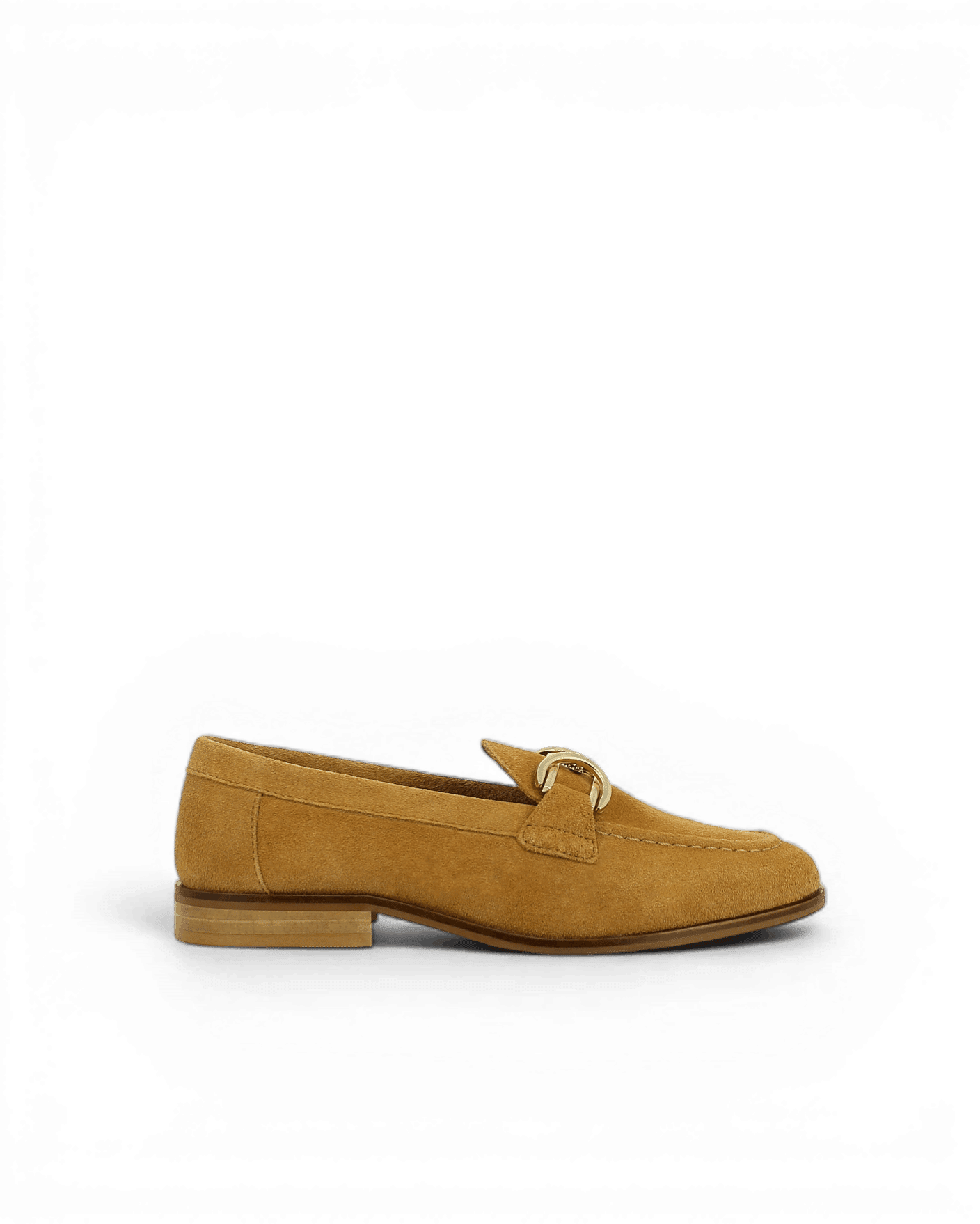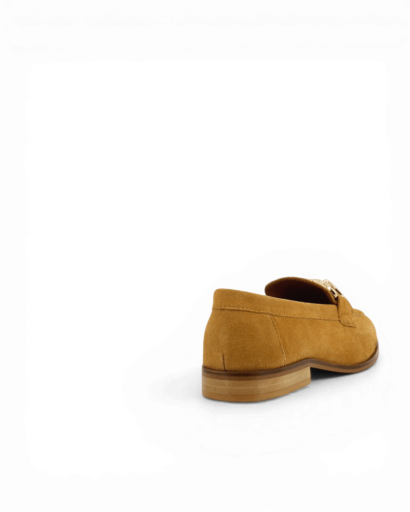 Ce mocassin femme au coloris biscuit se distingue par sa silhouette épurée et classique. La tige intégralement en cuir velours offre une texture douce et noble au toucher. Cette matière confère à la chaussure une élégance naturelle qui traverse les saisons sans jamais se démoder. Par ailleurs, la chaîne métallique dorée positionnée sur l’avant apporte une touche de sophistication contemporaine. Ce détail précieux attire subtilement le regard sans ostentation. De plus, le talon de 2 cm assure une légère élévation qui affine la silhouette tout en préservant votre confort de marche.