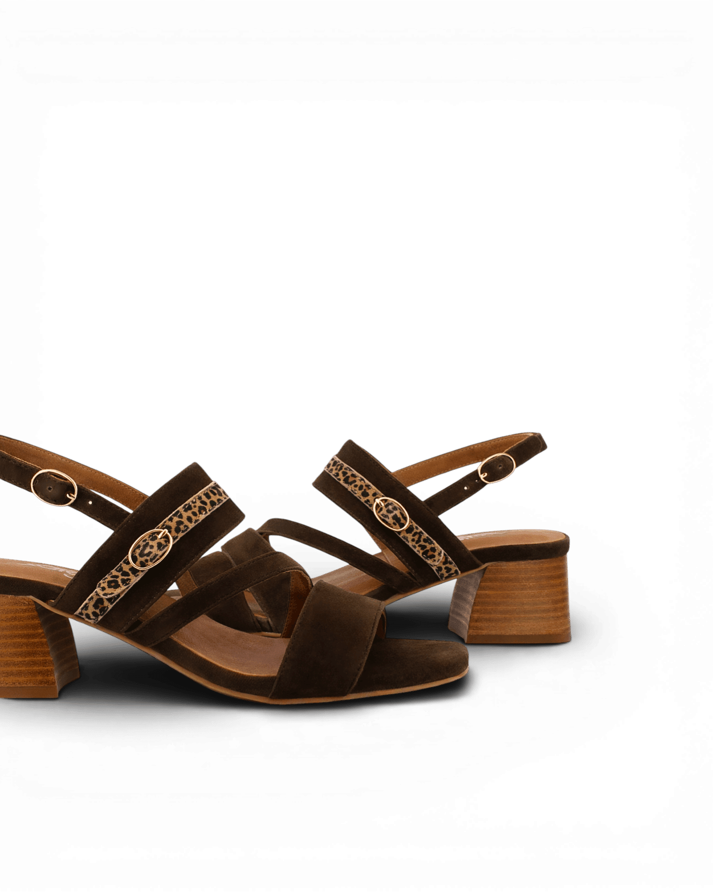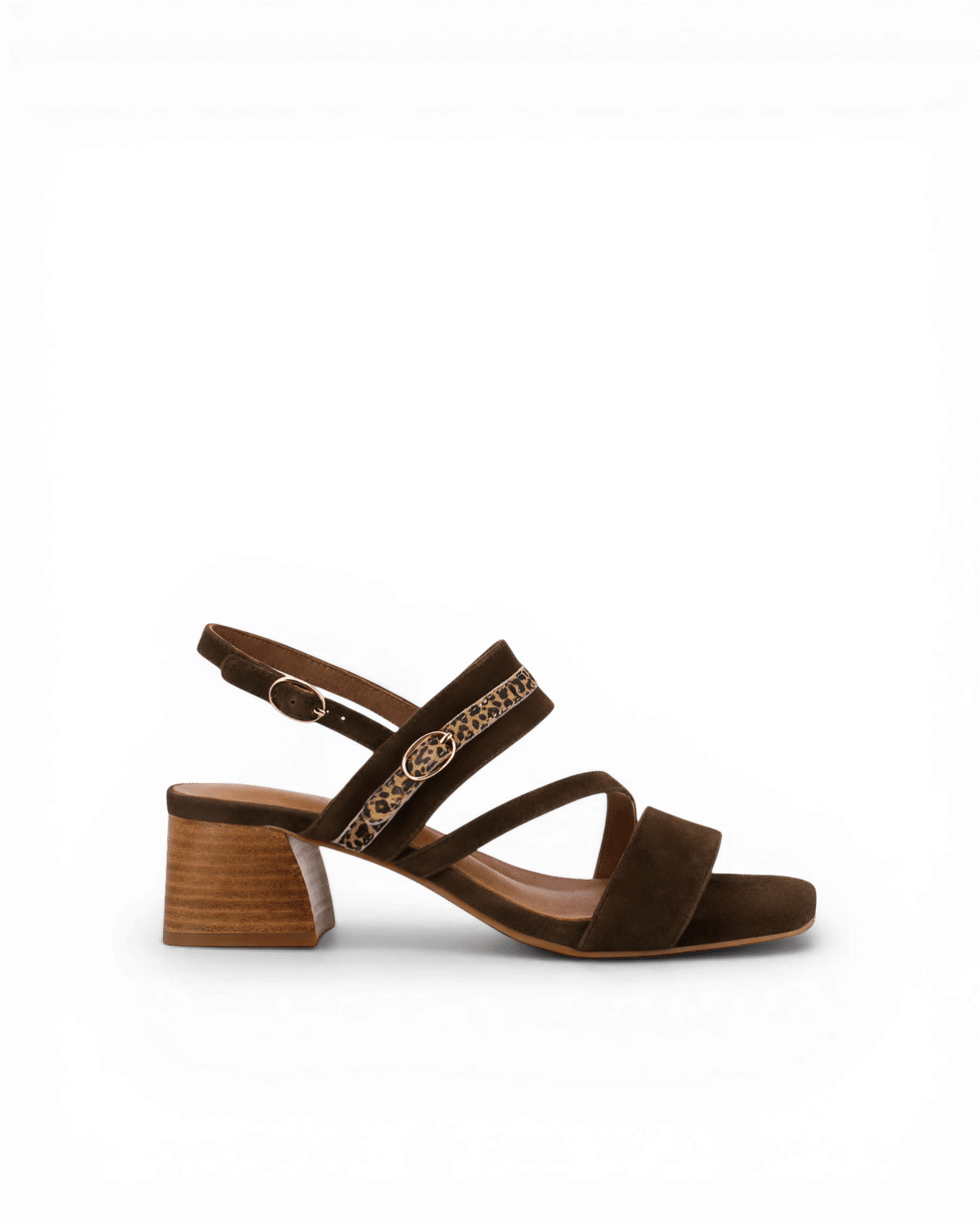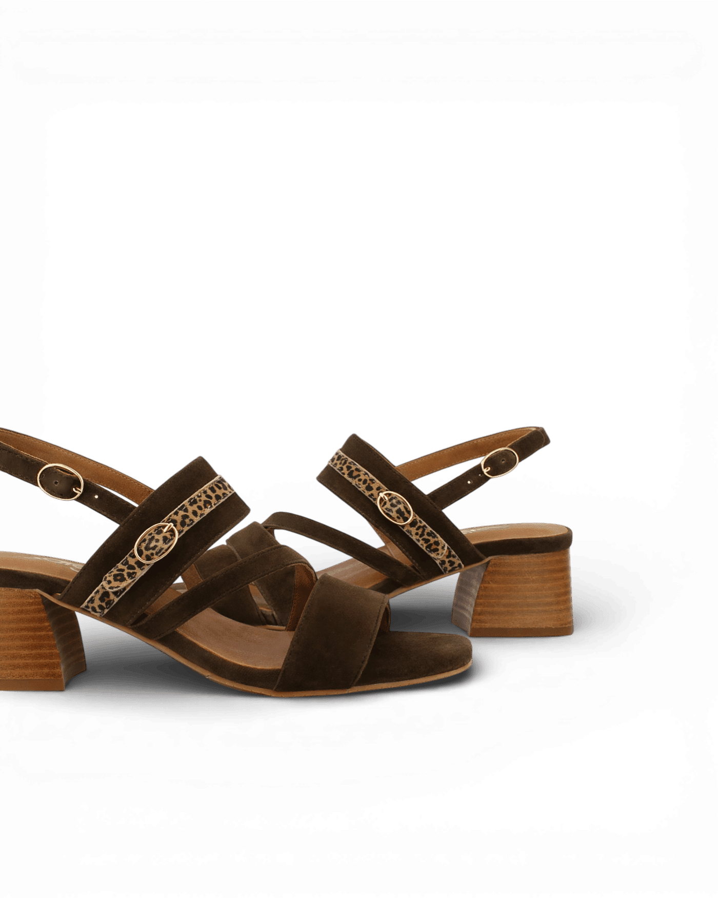 Cette sandale talon marron se distingue par sa construction harmonieuse et ses finitions soignées. La tige en cuir véritable offre une noblesse immédiate au modèle. De plus, les multiples brides structurent délicatement le pied avec élégance. La bride léopard ornée d’une boucle dorée apporte une touche d’originalité maîtrisée qui réveille subtilement l’ensemble. Par ailleurs, la bride arrière ajustable assure un maintien optimal grâce à sa boucle dorée. Le talon légèrement biseauté de 5 cm procure une hauteur flatteuse sans compromettre votre confort. La teinte marron intemporelle se marie harmonieusement avec toutes les nuances de votre garde-robe estivale.