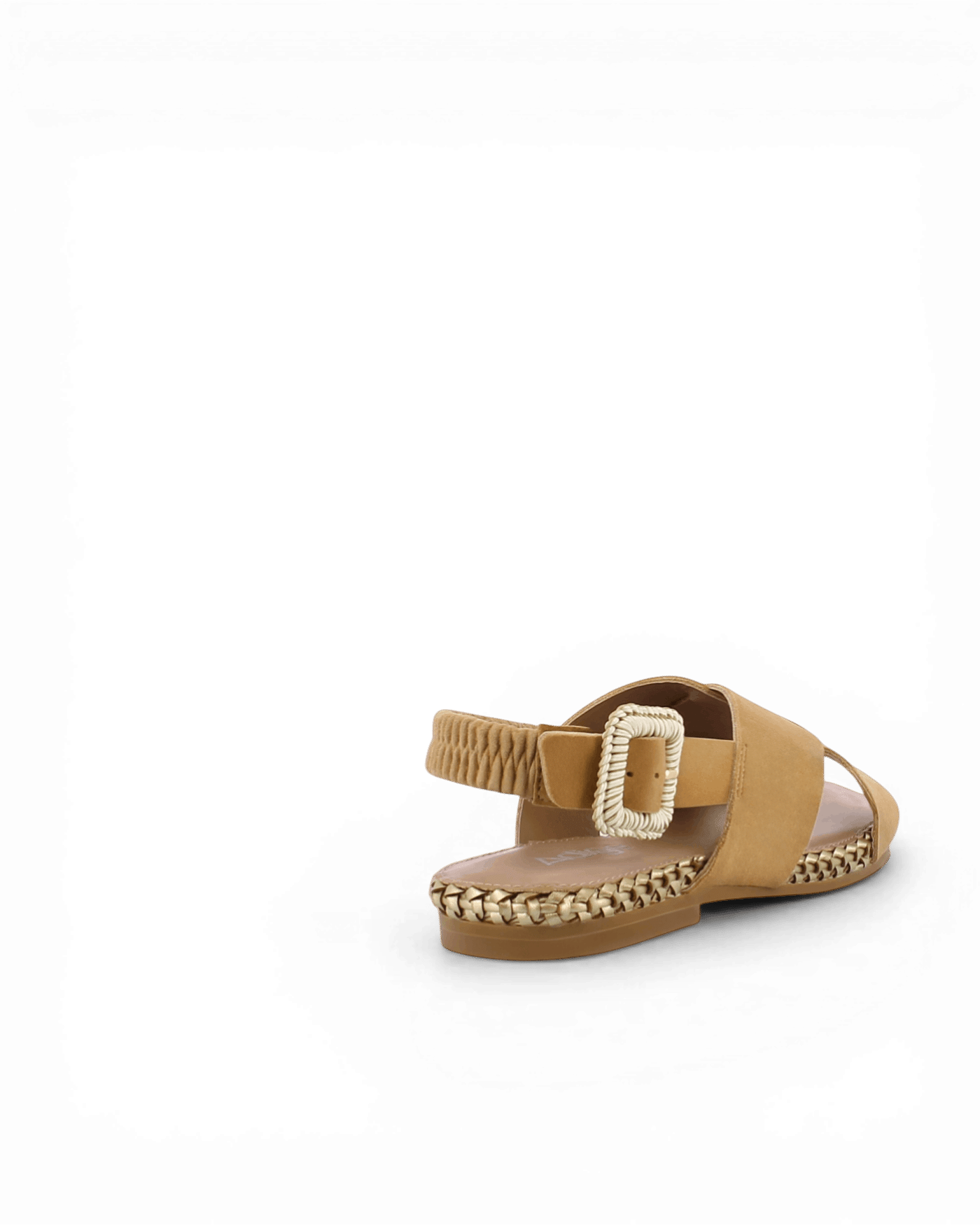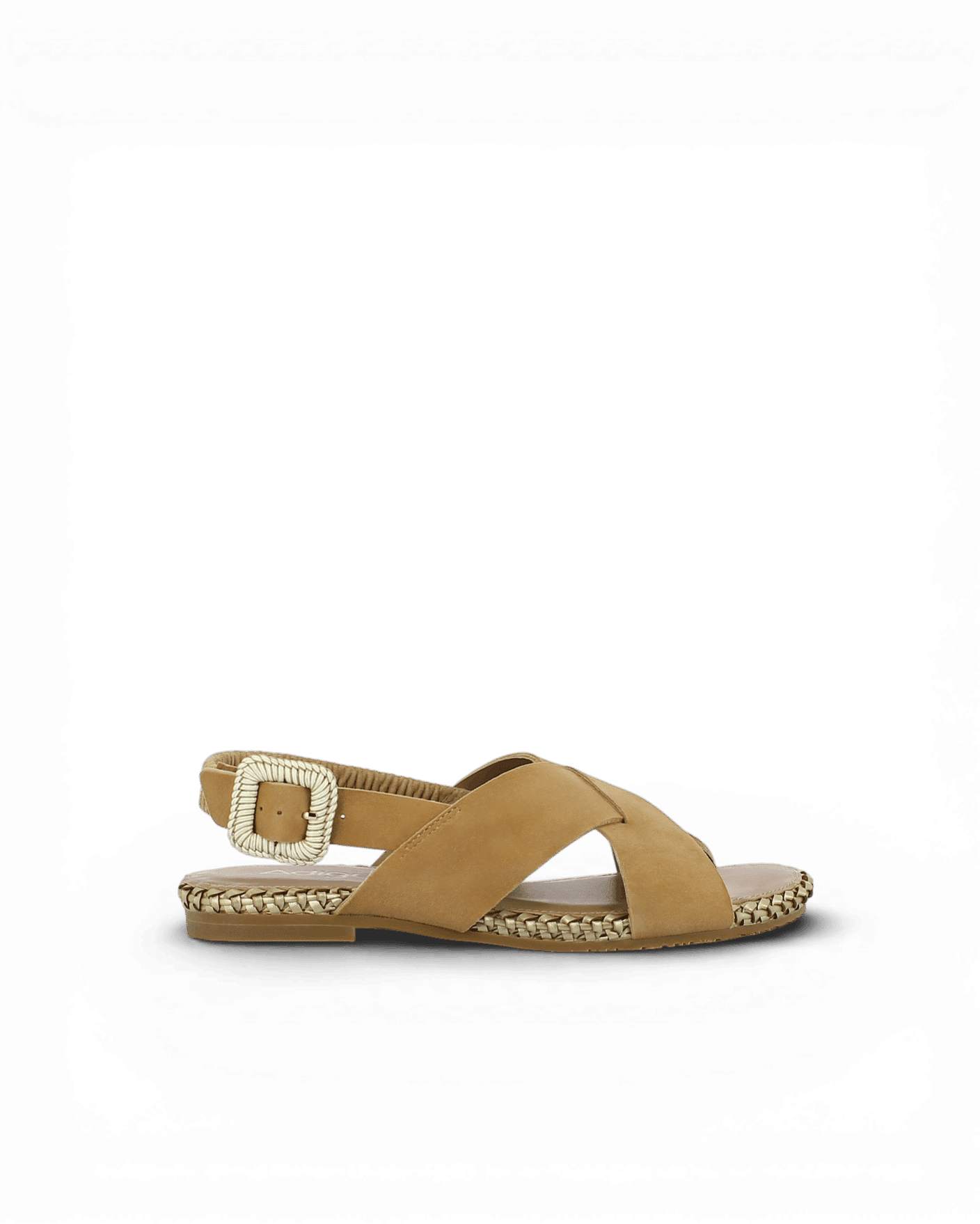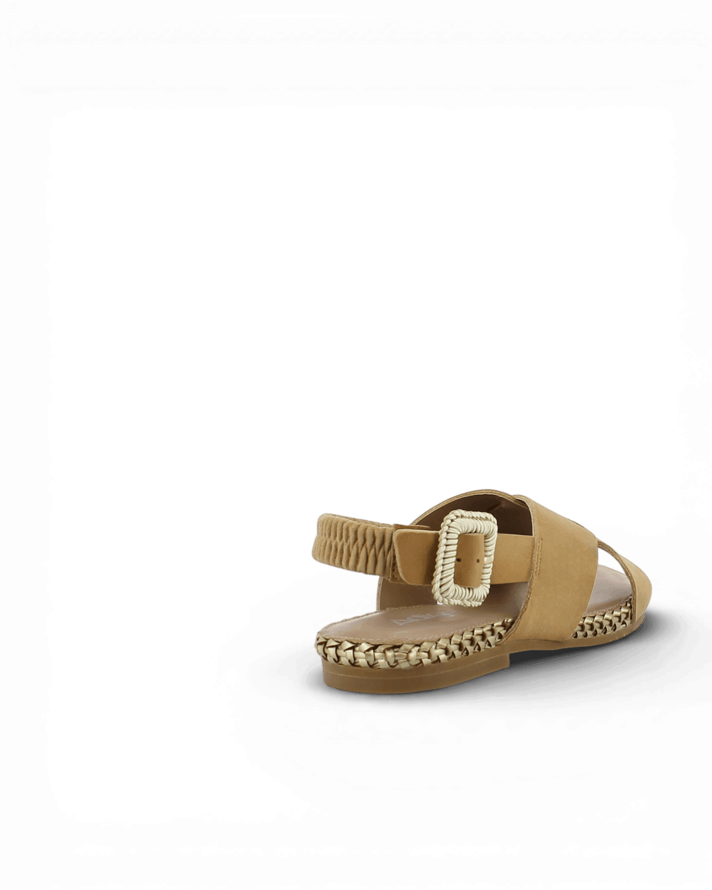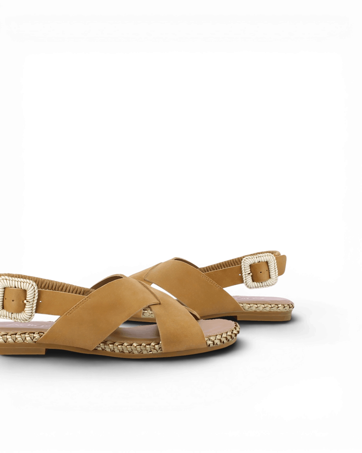 Le modèle Come se distingue par ses larges brides en cuir daim qui se croisent harmonieusement sur le dessus du pied. Cette construction graphique structure l’ensemble avec élégance et modernité. Le contour tressé apporte une dimension artisanale remarquable qui magnifie la silhouette. La bride arrière ajustable avec boucle en raphia crée un contraste de matière particulièrement réussi. En outre, chaque détail témoigne d’une recherche esthétique soignée. Cette alliance textile confère au modèle un caractère estival affirmé qui traverse les tendances avec aisance.