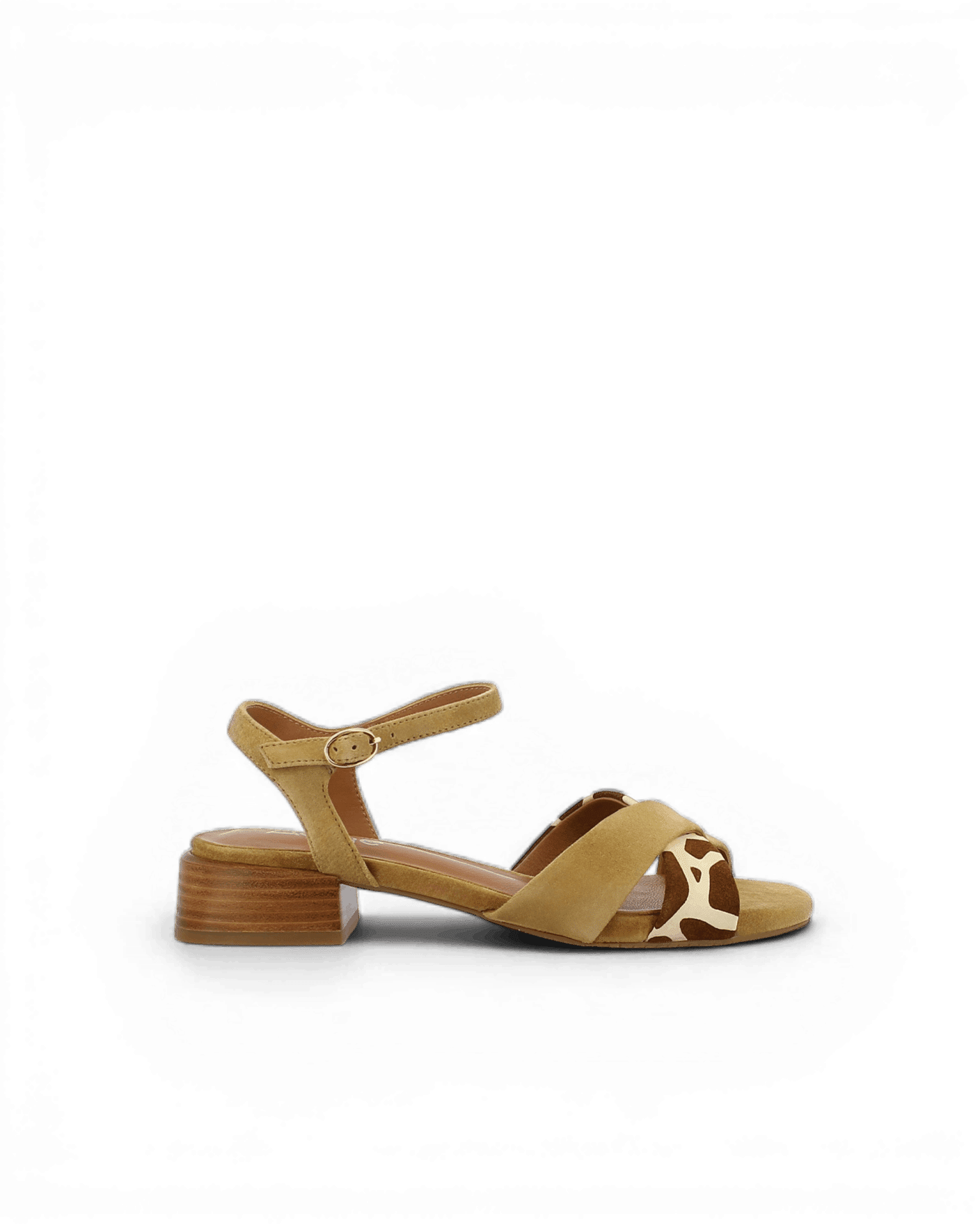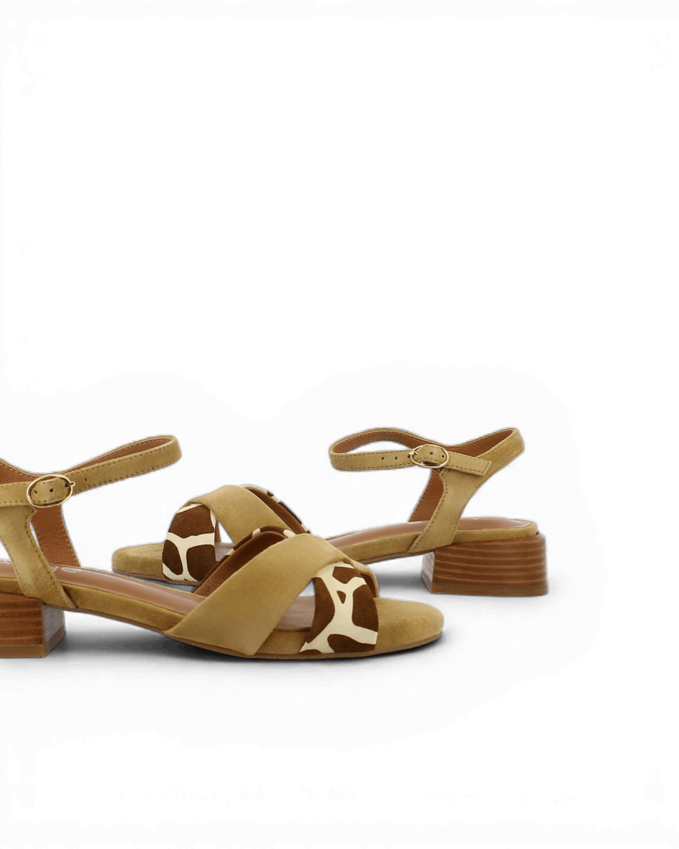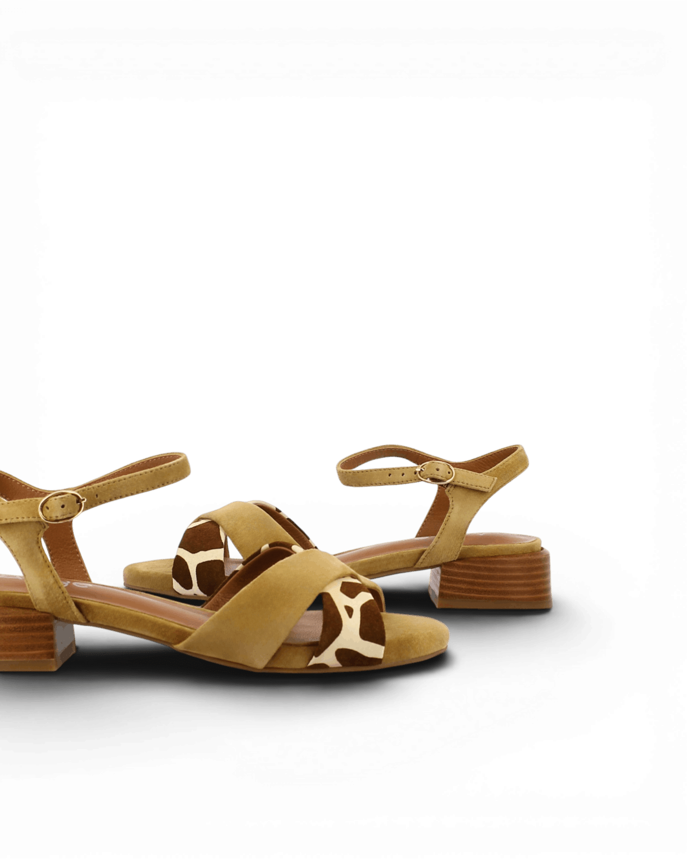 Le modèle Fika séduit par son association de cuir daim camel et d’empiècements imprimés qui créent une harmonie sophistiquée. Les motifs girafe blancs sur l’avant créent un contraste visuel dynamique et inattendu. Les brides en cuir daim structurent le pied avec élégance et douceur. La bride de cheville ajustable avec boucle dorée assure un maintien personnalisé tout au long de la journée. En outre, chaque détail révèle une attention particulière portée à l’esthétique. Cette composition témoigne d’une approche créative de la chaussure estivale qui ose l’originalité.
