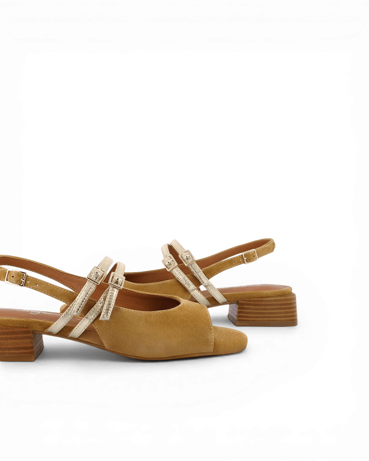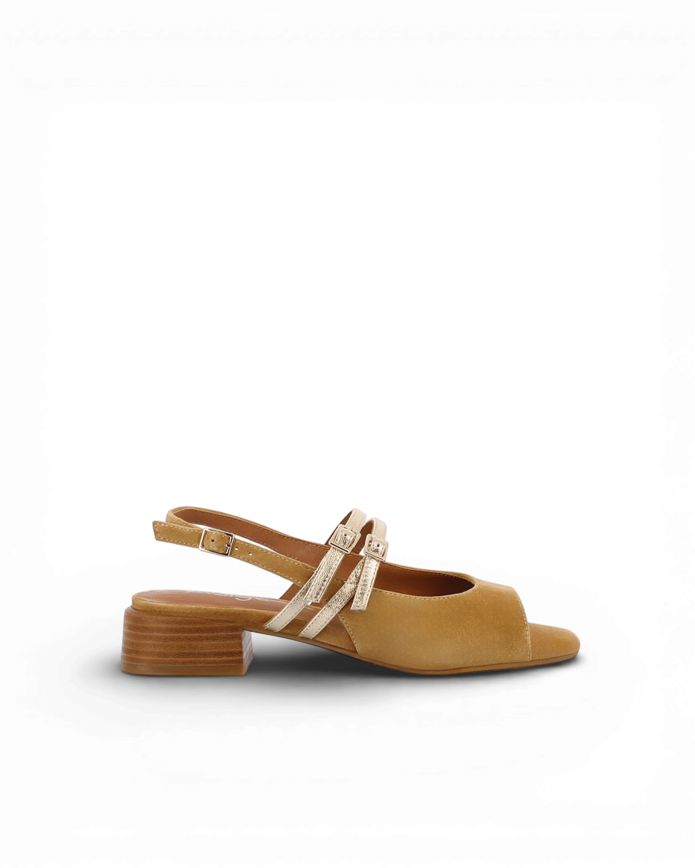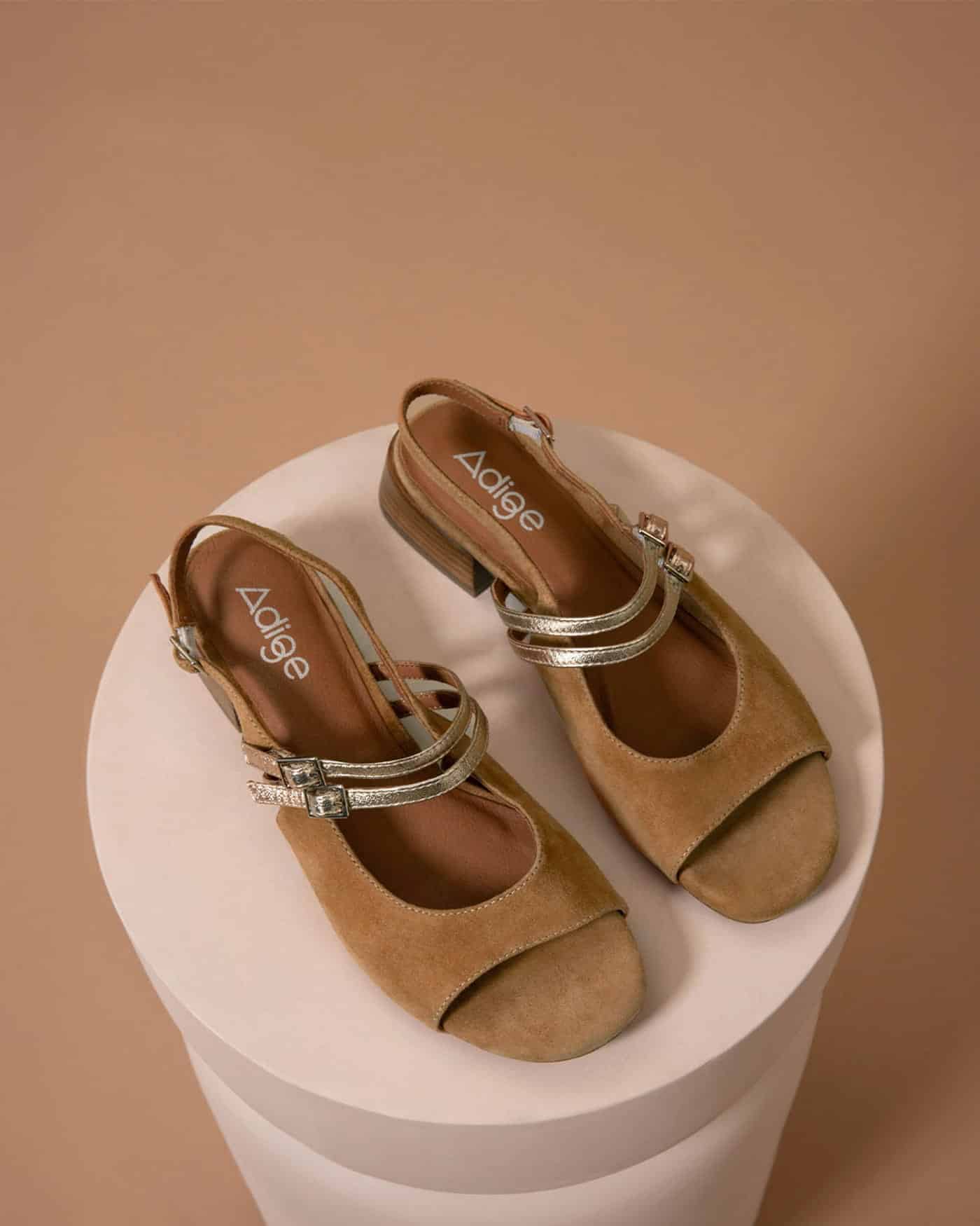 Le modèle Fago joue subtilement sur les associations de cuir pour créer un ensemble raffiné. Le cuir daim camel habille l’avant du pied avec douceur et texture veloutée. Les deux brides dorées ajustables apportent une note lumineuse raffinée qui structure l’ensemble. La bride arrière en cuir lisse assure un maintien sécurisé tout au long de la journée. En outre, chaque détail témoigne d’une recherche esthétique équilibrée. Cette combinaison de finitions crée un ensemble visuellement harmonieux et moderne qui traverse les saisons avec élégance.